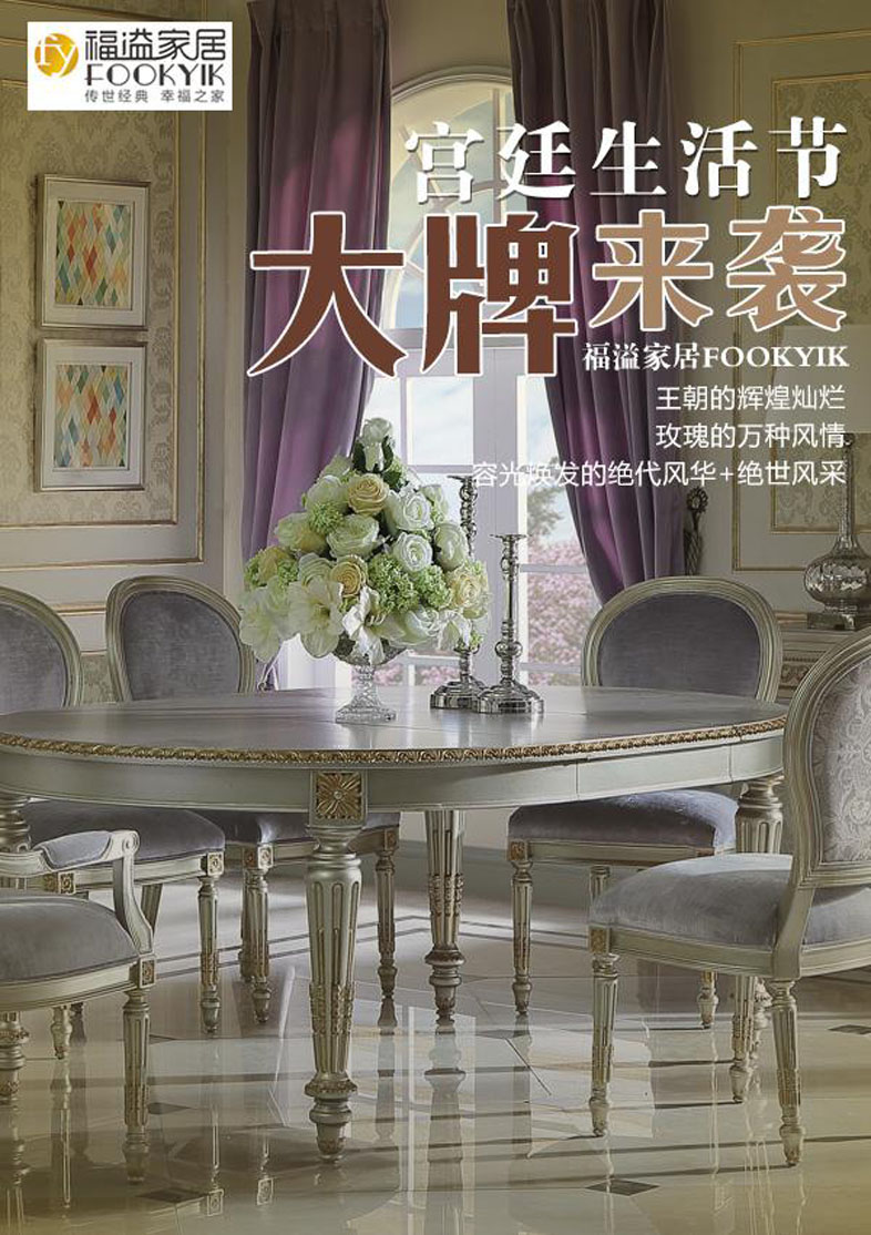 福溢家居FOOKYIK通過法式家具、英式家具、意大利豪華家具,打造現代宮廷生活,突出奢華、舒適、藝術、浪漫、精致、典雅、名貴、雋永等關鍵詞,它不僅僅是沿襲宮廷里的奢華元素,同時考慮了國人的坐臥使用要求、運用現代科技,塑造極致的舒適體驗,最終呈現更值得擁有的現代宮廷生活。