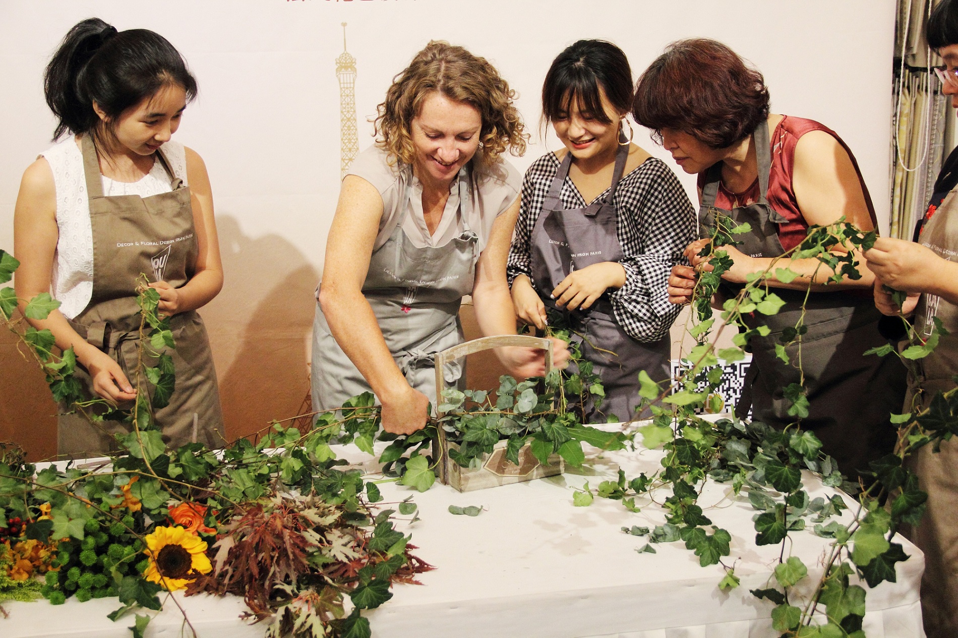 在Carole Delavelle耐心的分享指導之下,活動參與者便紛紛領悟其中的方法技巧,根據自己的巧思妙想開始花藝創作之旅。