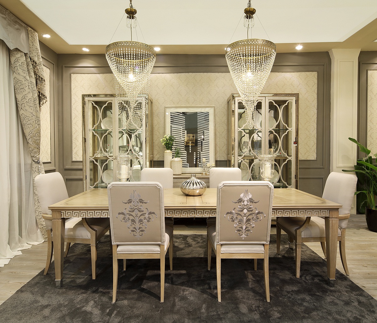 主打年輕消費(fèi)群體,從古希臘、古羅馬貴族服飾、建筑中萃取的高級(jí)灰為我們勾勒出一個(gè)高貴而理性的摩登世界。古希臘回紋、大馬士革花、仿金屬暗紋等呈現(xiàn)出搶眼的時(shí)尚表現(xiàn)力。平衡了大氣優(yōu)雅與細(xì)節(jié)精致的共存。