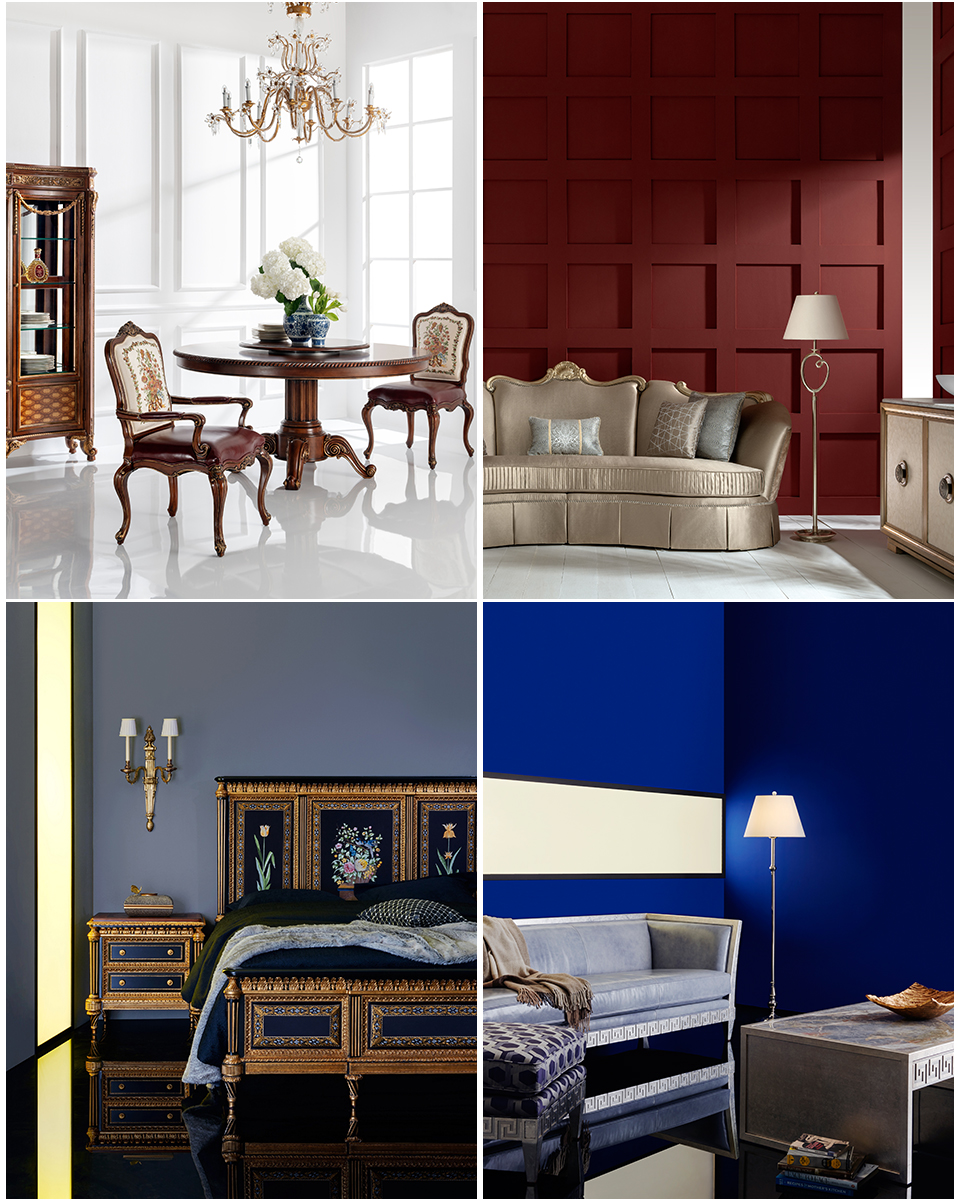 古典唯美的意式風情多以古希臘古羅馬家具作為創(chuàng)作靈感,洛可可線條、羅馬柱、描金工藝、阿坎賽斯葉狀雕刻,彩繪拼花……凝練文藝復興時代的雍容華美。