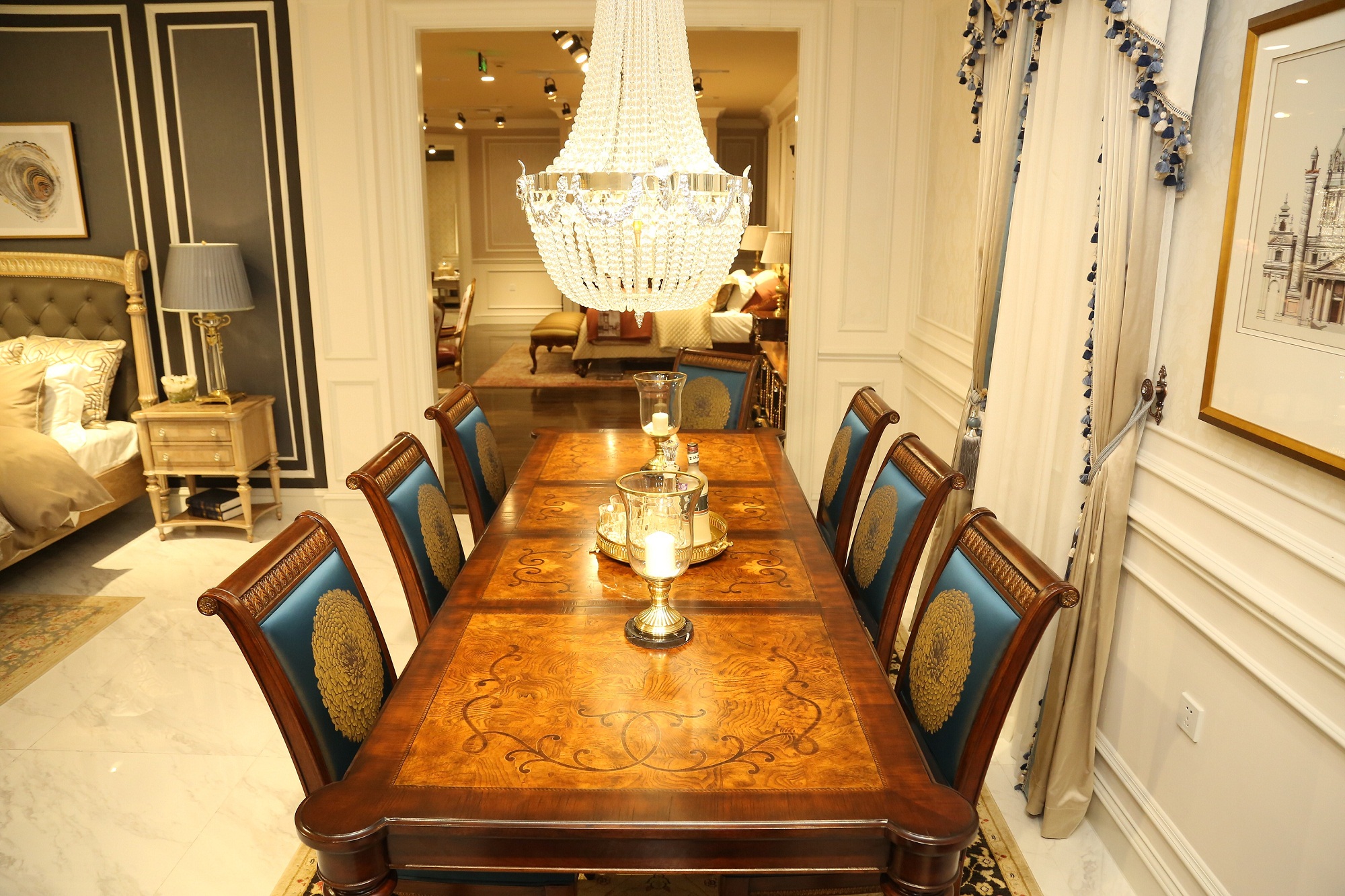 窗明幾凈的展廳分空間細致展示了福溢家居英法意時尚等系列產(chǎn)品,既有歐洲皇庭的奢侈生活;又有法國田園的休閑起居;既有意大利一絲不茍的生活追求;又有時尚輕奢的自由個性。以不同的生活方式去追尋多彩生活。