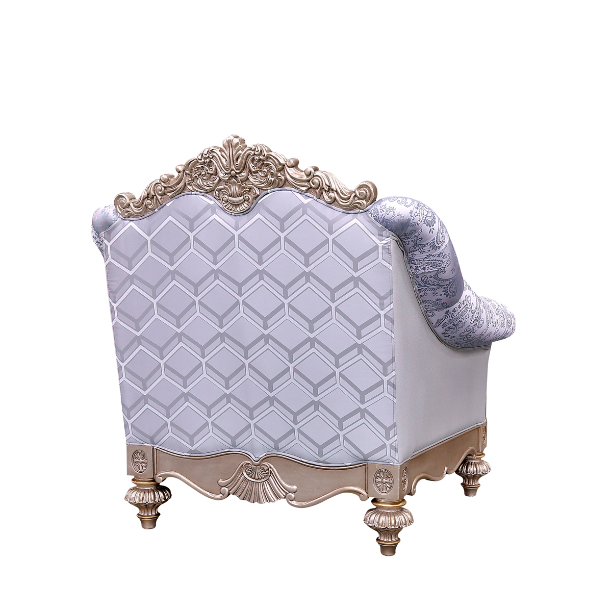 * 以現(xiàn)位于美國(guó)白宮中象征友誼和權(quán)力的堅(jiān)毅桌(英語:Resolute desk)為設(shè)計(jì)意念, 實(shí)木雕刻與貼銀箔工藝相結(jié)合, 散發(fā)高貴典雅的氣息;舒適的軟包設(shè)計(jì),在釘飾拉扣的點(diǎn)綴下,帶來超脫塵俗的藝術(shù)美。