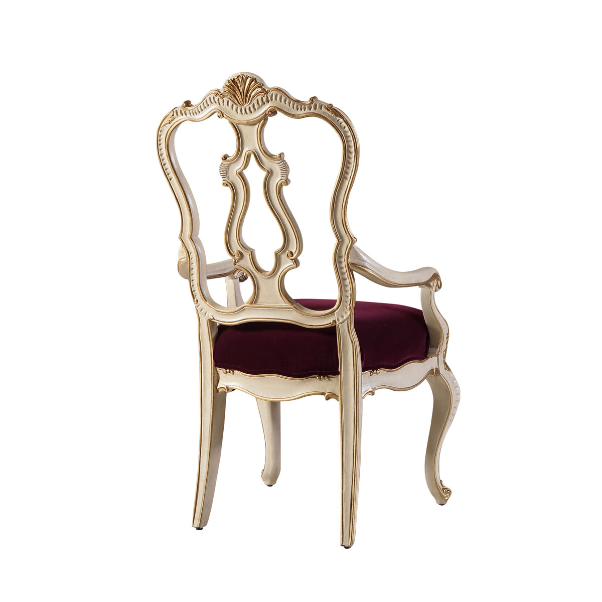 * 以意大利維羅納的唯美故事為背景,采用花瓶造型鏤空椅背與經典的彎腿設計,飾以精致的手工卷葉雕刻細節,充分彰顯了古典奢華與現代美學的結合,精彩演繹了意大利人對奢華絢麗的寵愛。