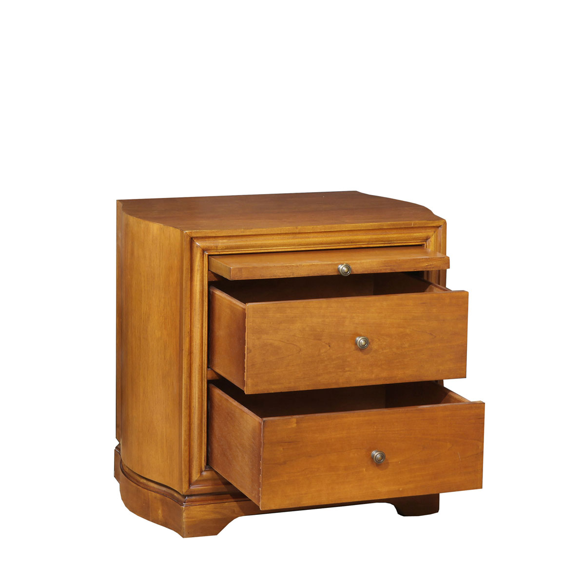 經典的原木色調,最大程度上保留了木材的色彩與質感,帶來親近自然的舒適與放松;兩個帶有硬木滑軌的抽屜,滿足了功能性需求,可拉伸的層板,極具個性與創意;流動性的弧線,設計感十足而不失簡潔大方,淋漓盡致地展現了現代都市白領鐘愛的簡單元素。