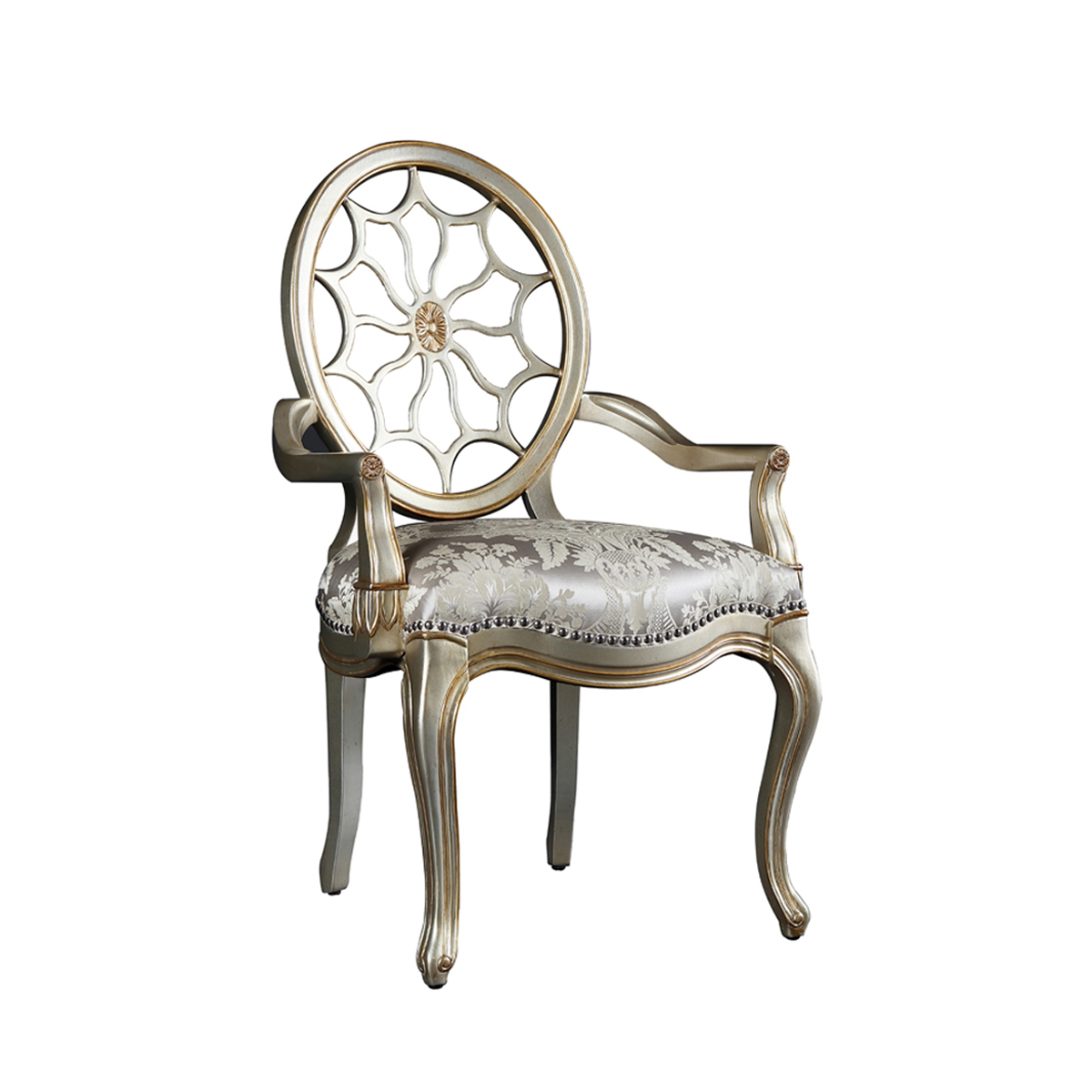 * 參考喬治三世時期的古董造型設計,使用輪子構造椅背和安妮王后腿,配以精致的手工雕刻細節和涂金工藝、布藝面料和厚實柔軟的填充物,是豪華系列凡爾賽玫瑰法式扶手椅的特色。