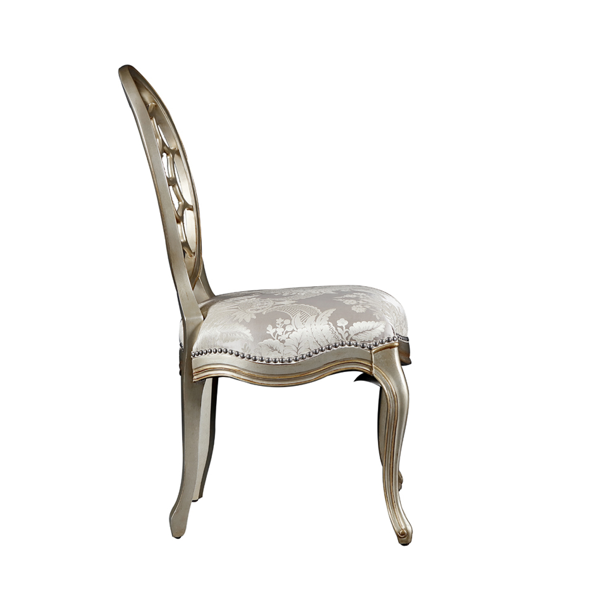 * 參考喬治三世時期的古董造型設計,使用輪子構造椅背和安妮王后腿,配以精致的手工雕刻細節和涂金工藝、布藝面料和厚實柔軟的填充物,是豪華系列凡爾賽玫瑰法式單椅的特色.