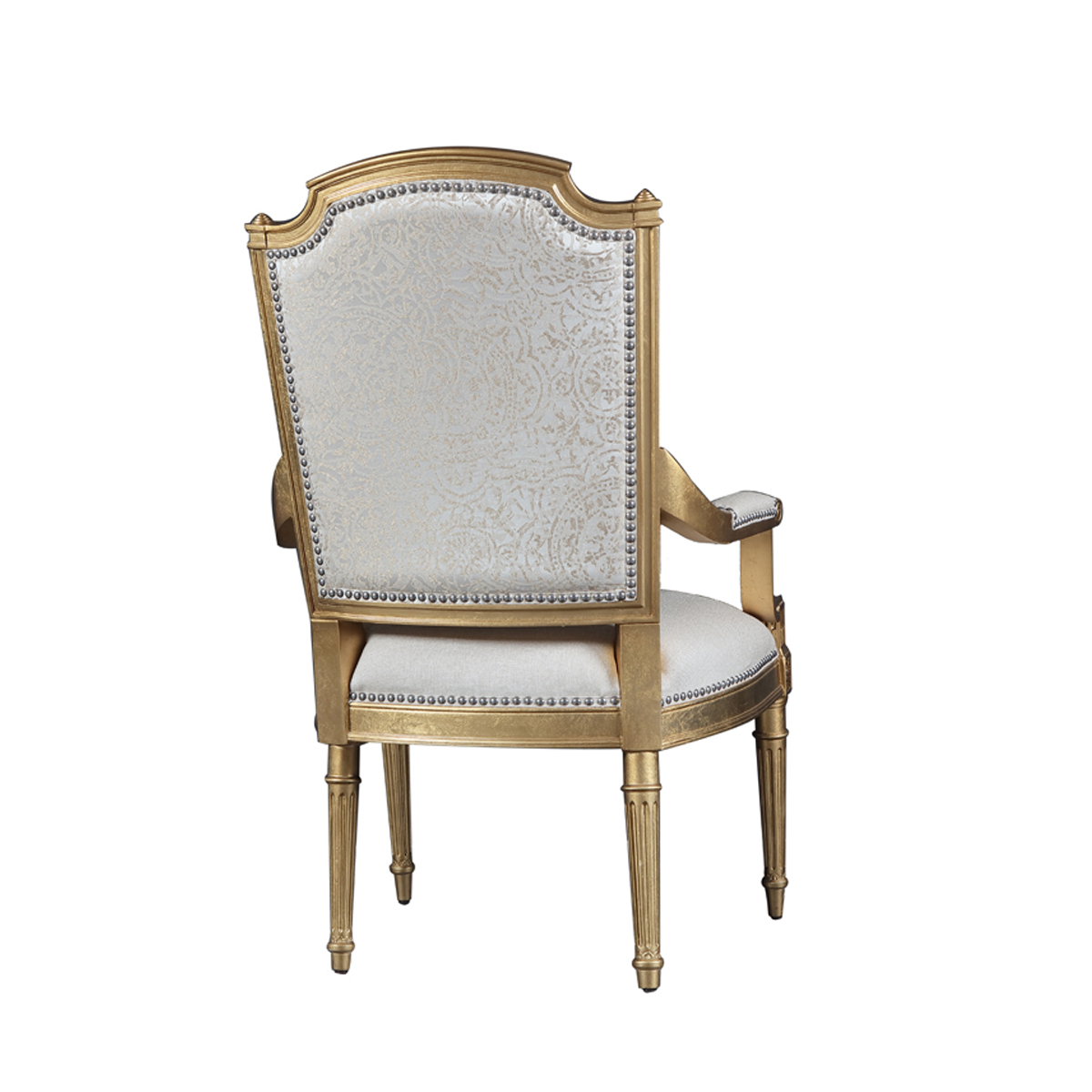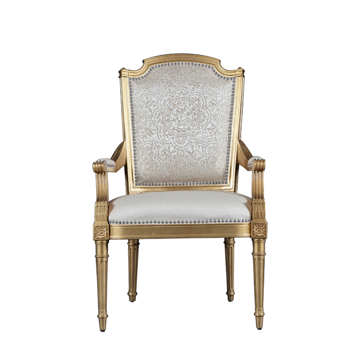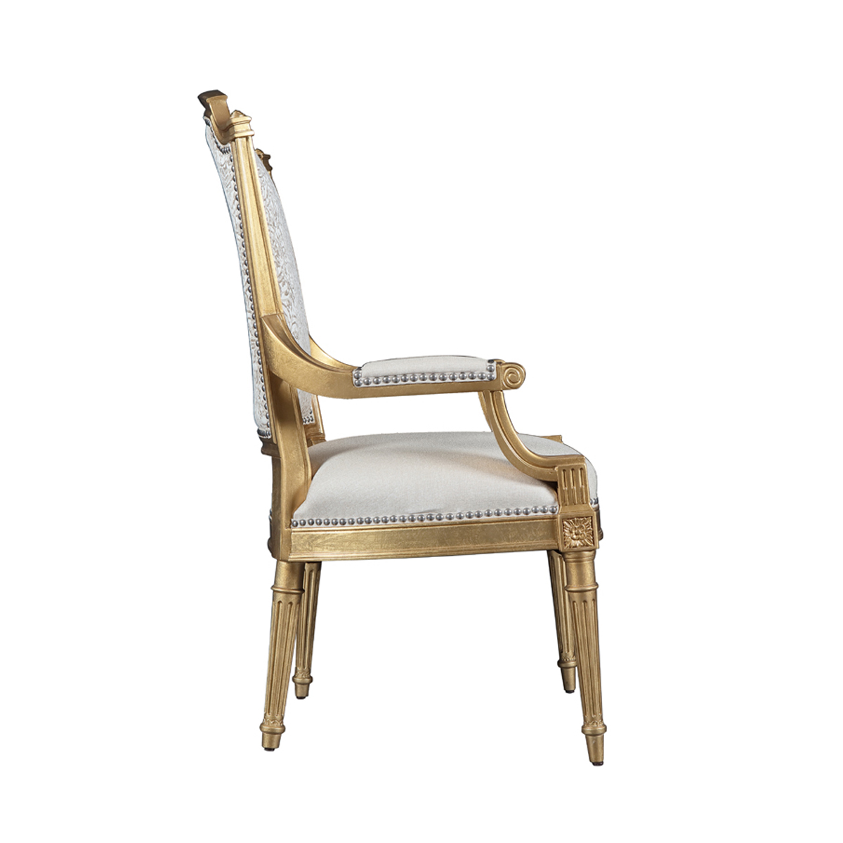 赫普爾懷特風(fēng)格的盾形背搭配車織雕刻腿比例優(yōu)美,造型優(yōu)雅,兼有古典式的華麗和路易十六式的纖巧。描金工藝與淡黃色軟裝布藝的交織,是自然的色彩密碼與權(quán)利至上的象征。