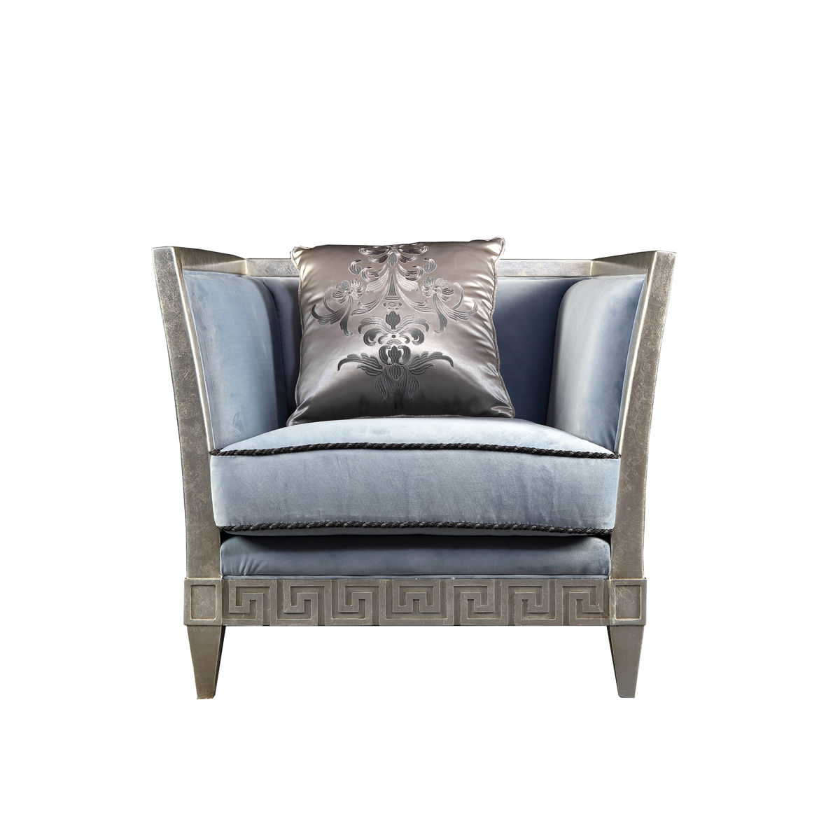 現(xiàn)米蘭代風(fēng)格造型簡(jiǎn)練,方正規(guī)整,充滿簡(jiǎn)約的時(shí)尚氣息,富含設(shè)計(jì)或哲學(xué)意味而且不顯夸張。沙發(fā)底部以希臘回紋修邊,賦予空間低調(diào)質(zhì)感;豐富的軟包久坐不易塌陷,為人們提供舒適的家居體驗(yàn);同時(shí)使用象征福貴之氣的絳紫色,瞬間提升了整個(gè)空間氣質(zhì)。