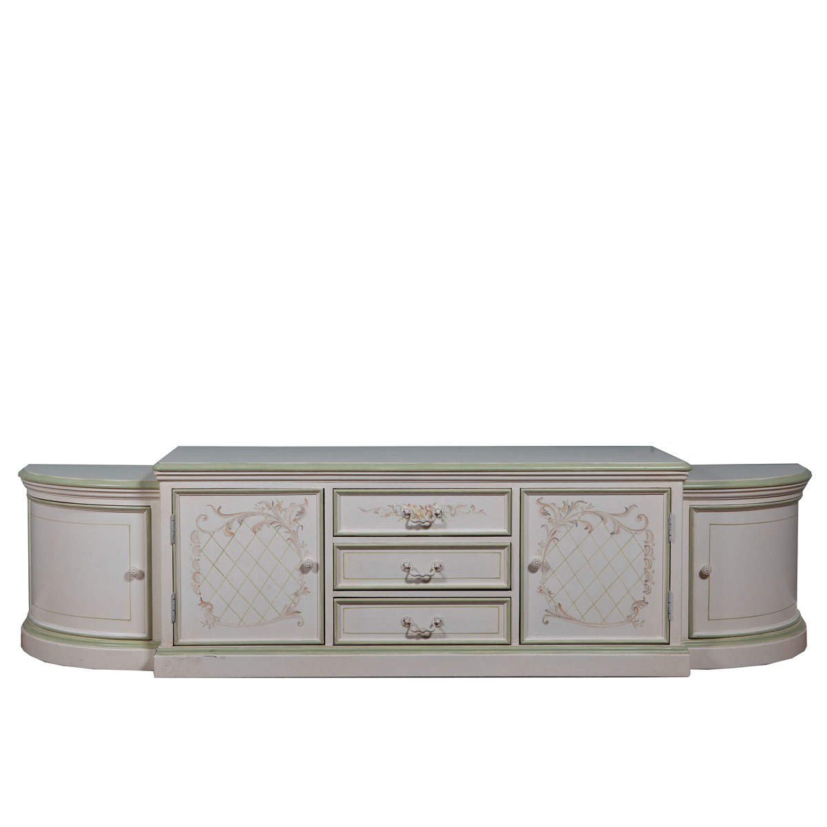 普羅旺斯的花海已折射在以花卉為主題的手工彩繪上,每一筆每一線都夾帶著花朵里的芬芳,法國的古董白跳躍著清新的復古美,與精致的彩繪相得益章,曲直結合的新古典主義造型與花藤抽手配搭更顯浪漫。