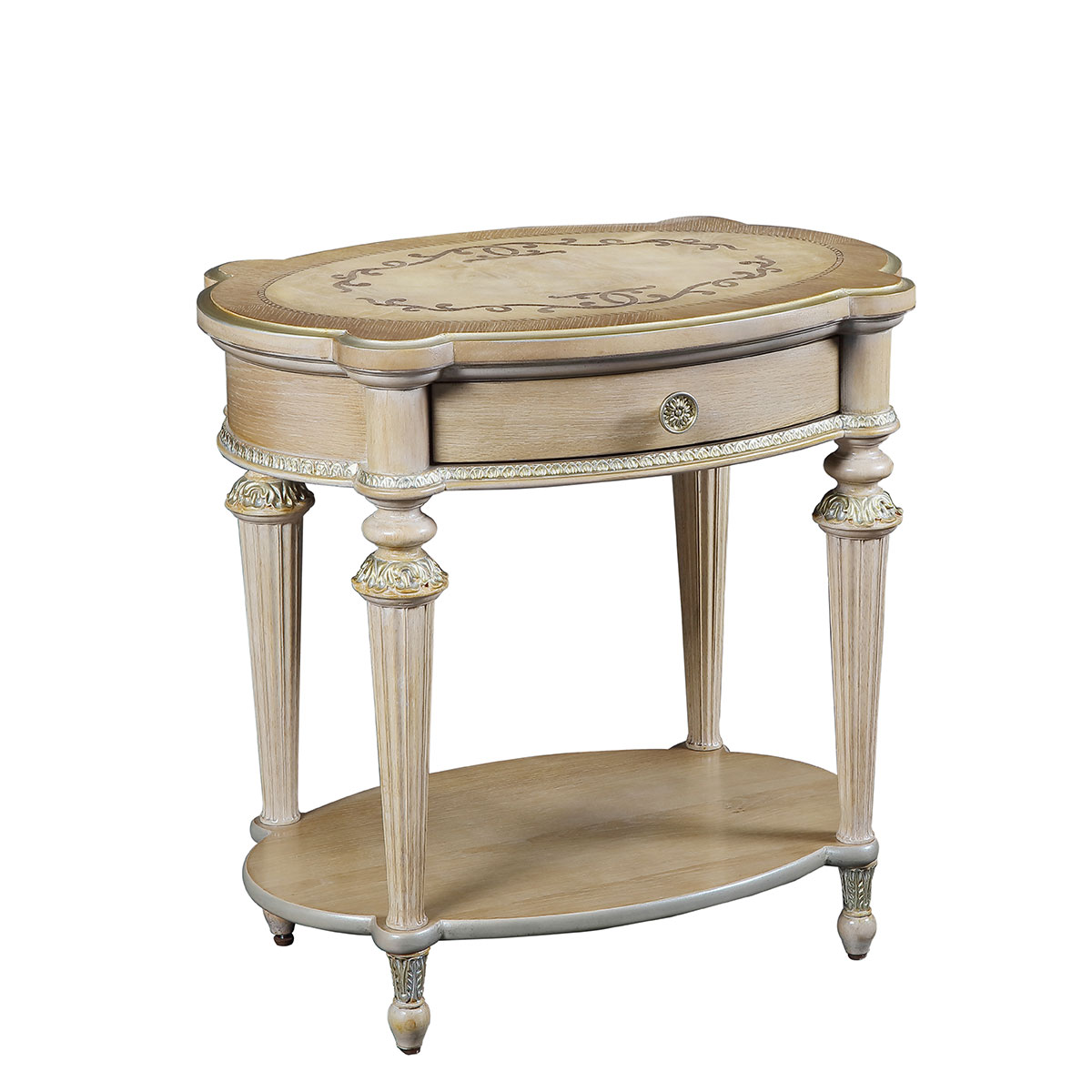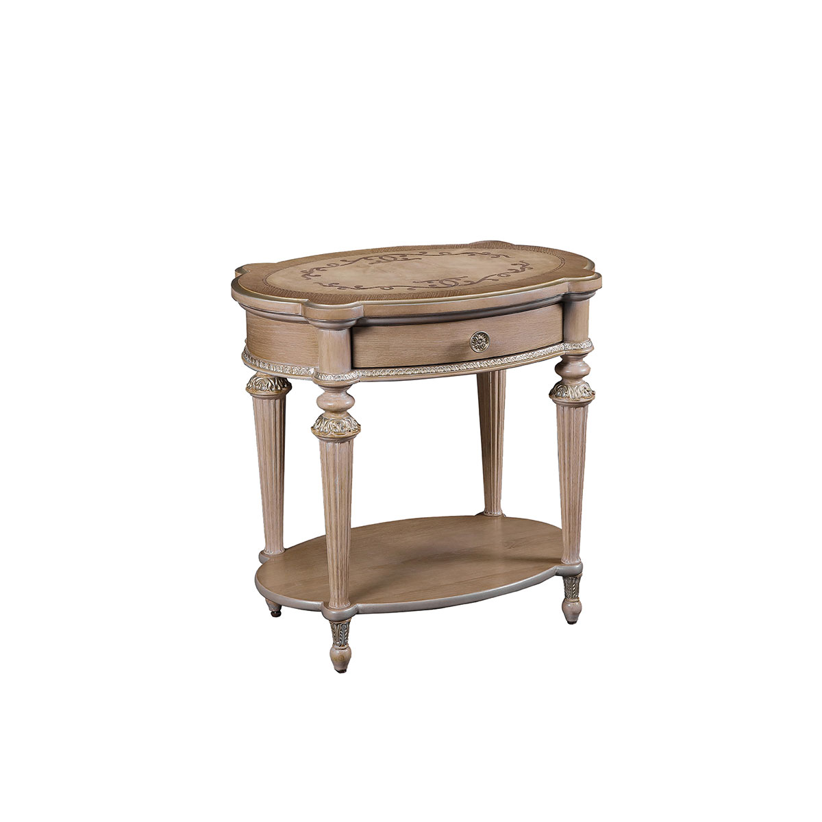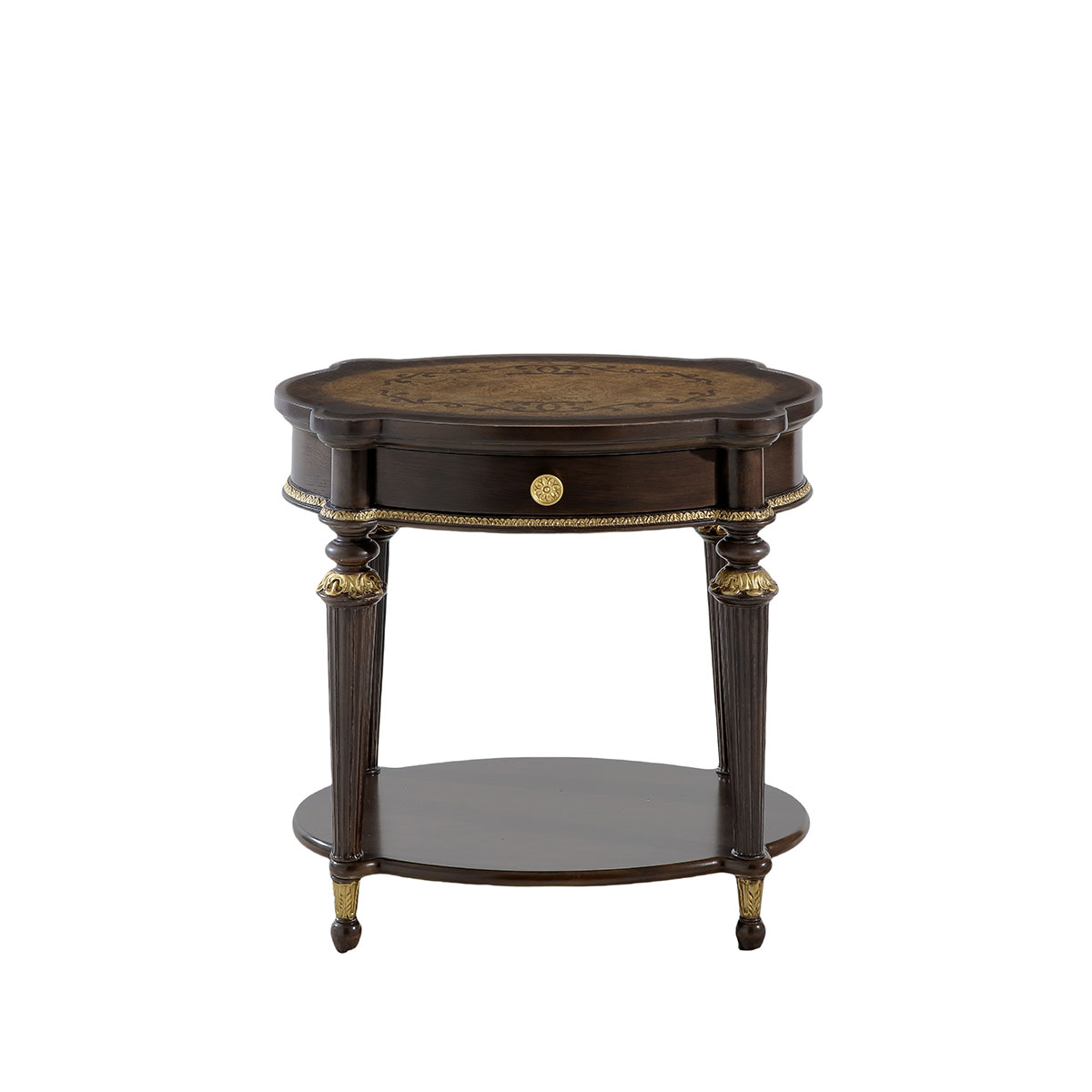 意大利古典家具,講究的是細節的完美極致和整體的高雅奢華, 薄木拼花工藝,設計師將刨制的珍稀木片通過一定規則和樣式拼貼成賞心悅目的圖案,貼銀刻金和鑲嵌的裝飾在這個翡冷翠橢圓燈臺上也能一一呈現,不僅美觀奢華,更整體增加了家具的歷史性和藝術性。