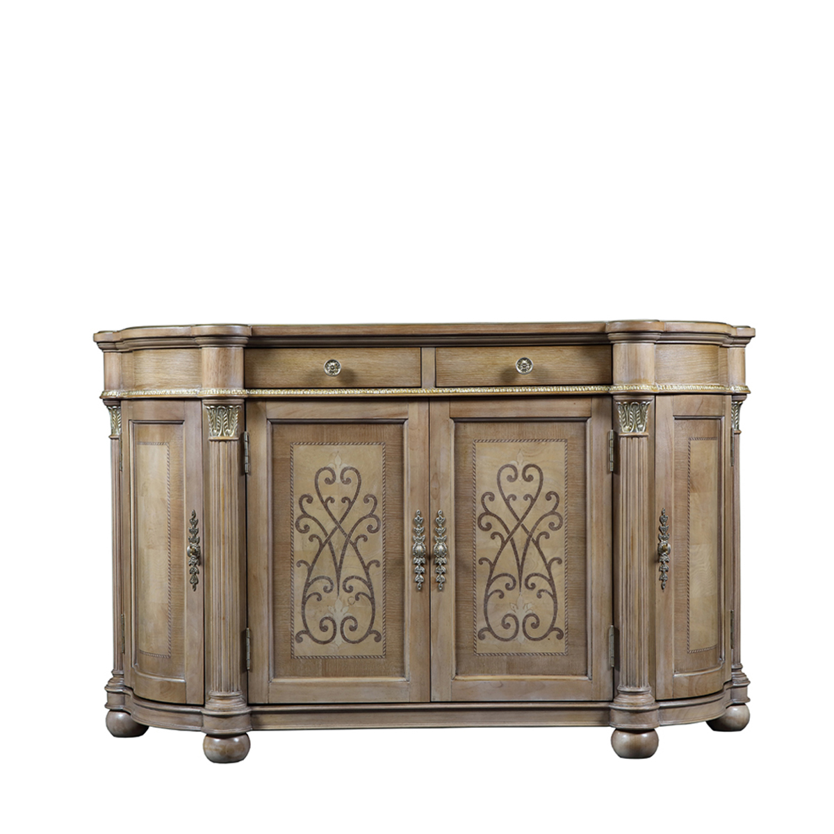橡膠木+環保人造板+橡木皮+白栓樹瘤、黑胡桃木、楓木、裝飾線條等木皮貼面