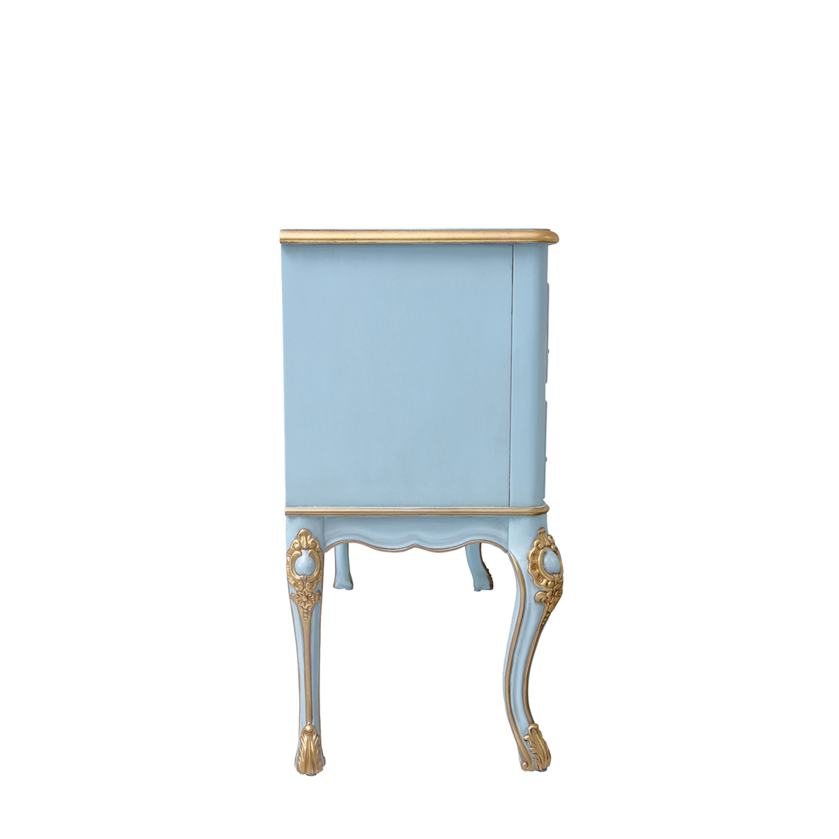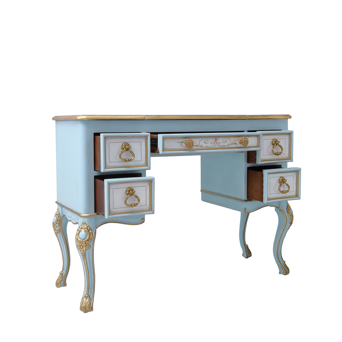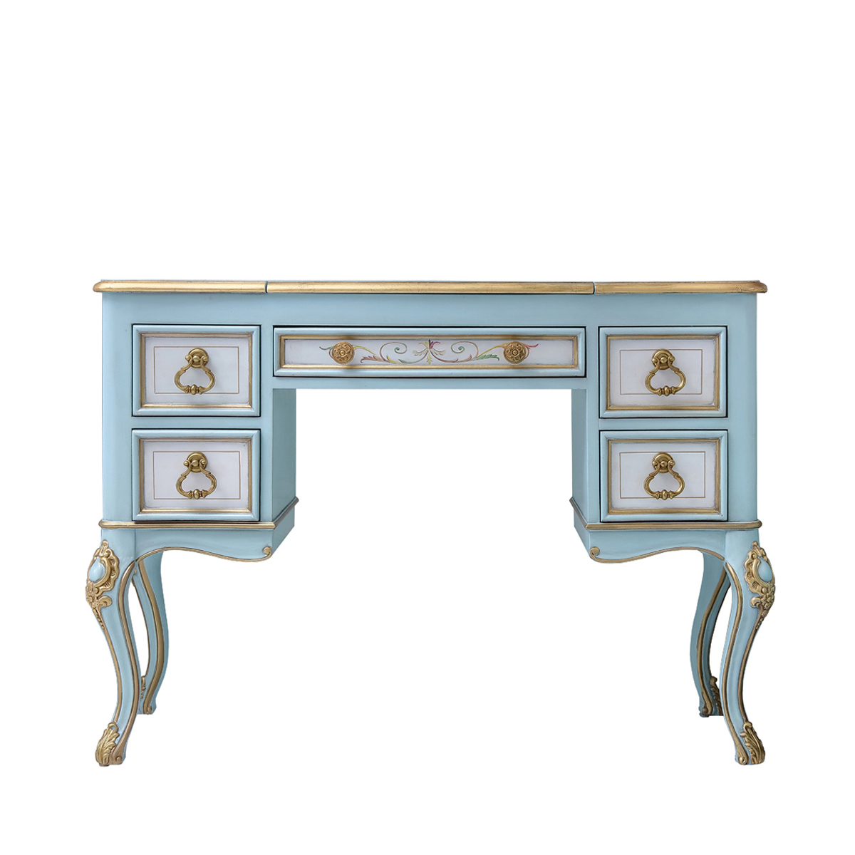 維羅納清新梳妝臺,以桑德羅·波提切利(Sandro Botticelli)所繪畫的《維納斯的誕生》為靈感來源,優雅的“S”彎腳如天鵝頎長的脖頸,配以明媚的維羅納天空藍,甜美夢幻,無疑是觸動少女心的時尚設計。