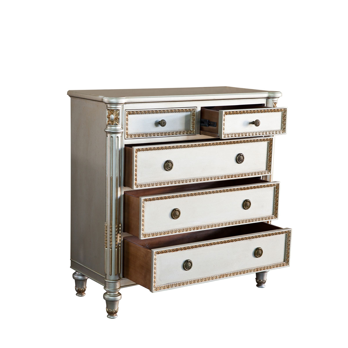 * 為表現法國路易時期的莊嚴和浪漫,以法國凡爾賽宮為設計元素。使用歌頌路易十四時期的太陽花雕刻;路易十六時期的建筑柱雕刻;顯示其王權穩固地位的錐形腿腳設計、古銅色的球形把手和貼金工藝,完美演繹了法式宮廷家具的奢華尊貴。