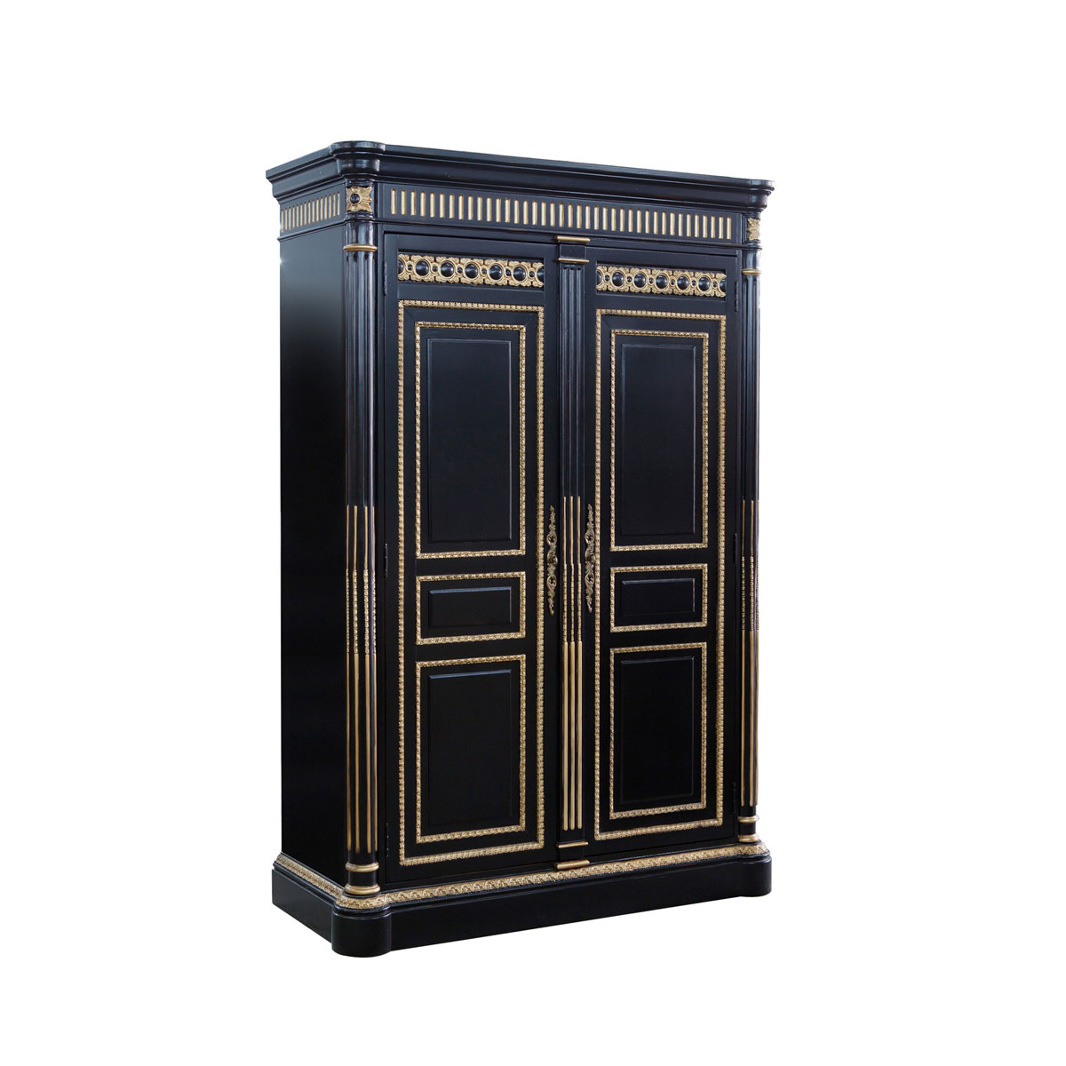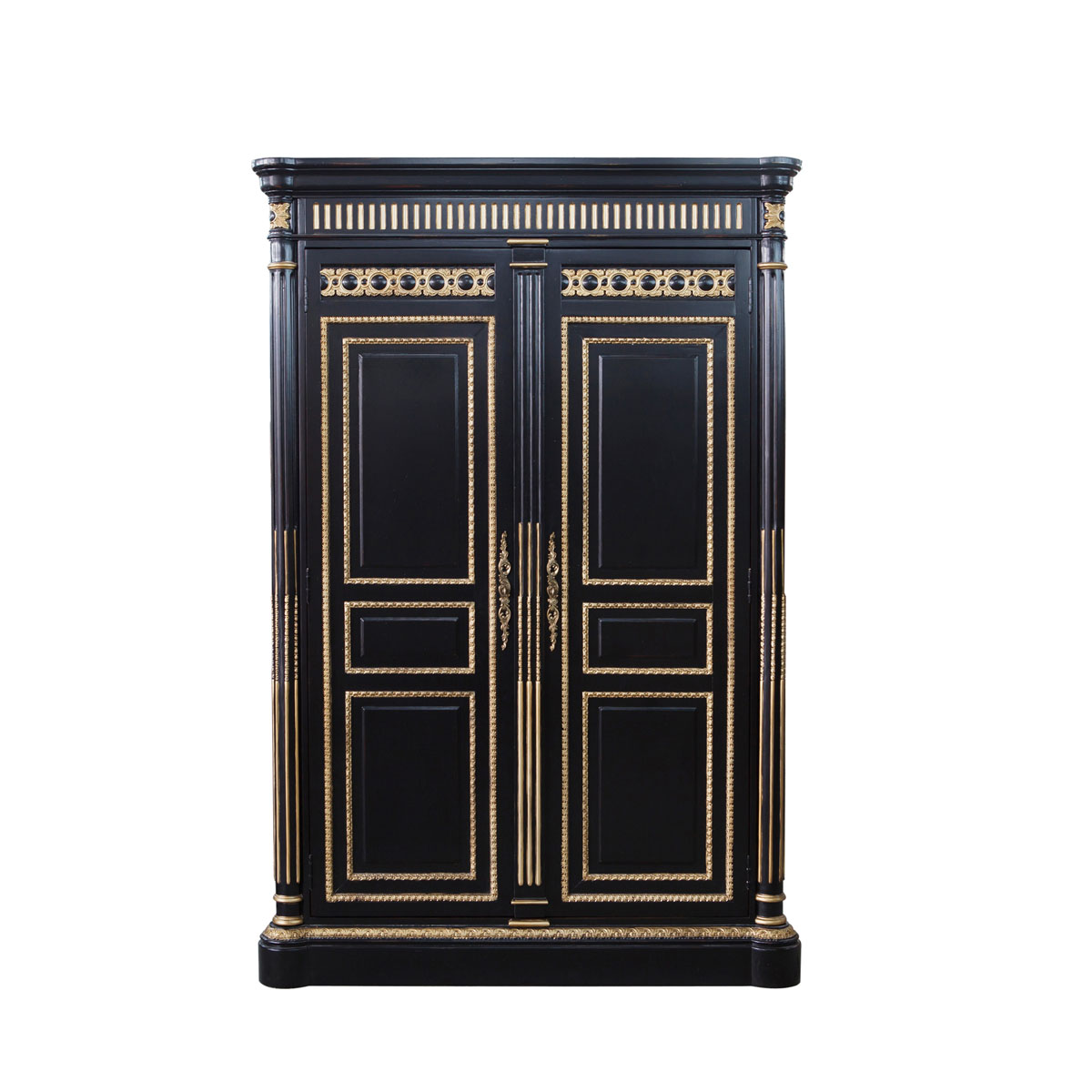 * 以法國路易十六時期風(fēng)格的古董柜造型為設(shè)計基礎(chǔ)。使用歌頌路易十四時期的太陽花連續(xù)雕刻;路易十六時期的建筑柱雕刻和貼金工藝,完美演繹了法式宮廷家具的奢華尊貴。