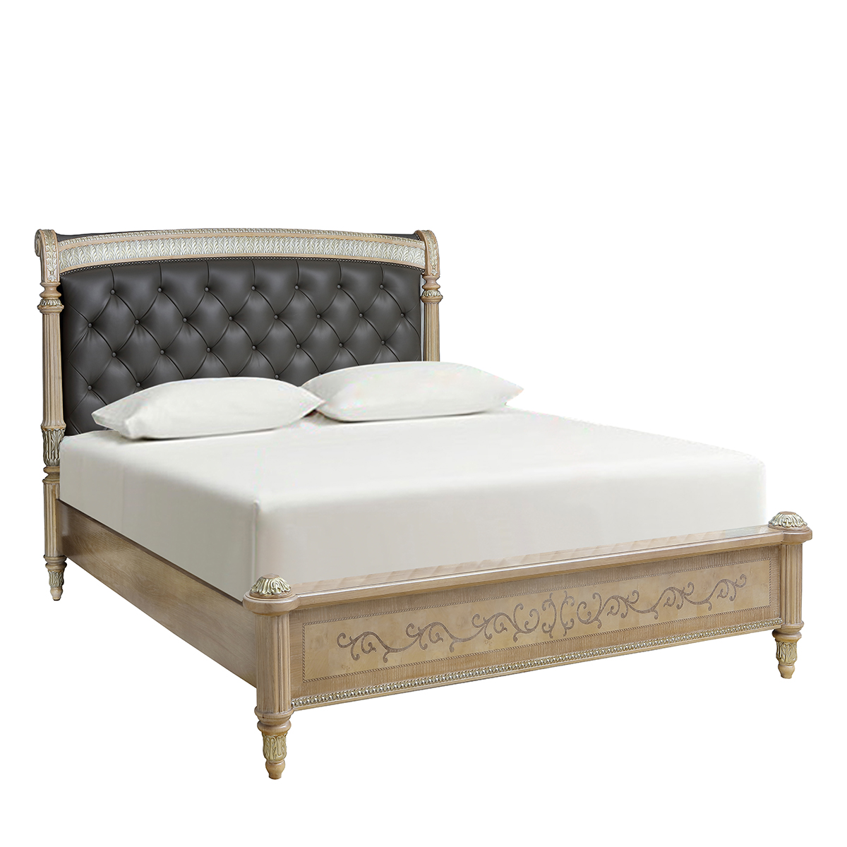 橡膠木+鵝掌楸木+環保人造板+橡木皮+白栓樹瘤、楓木、裝飾線條等木皮貼面+海綿+皮藝