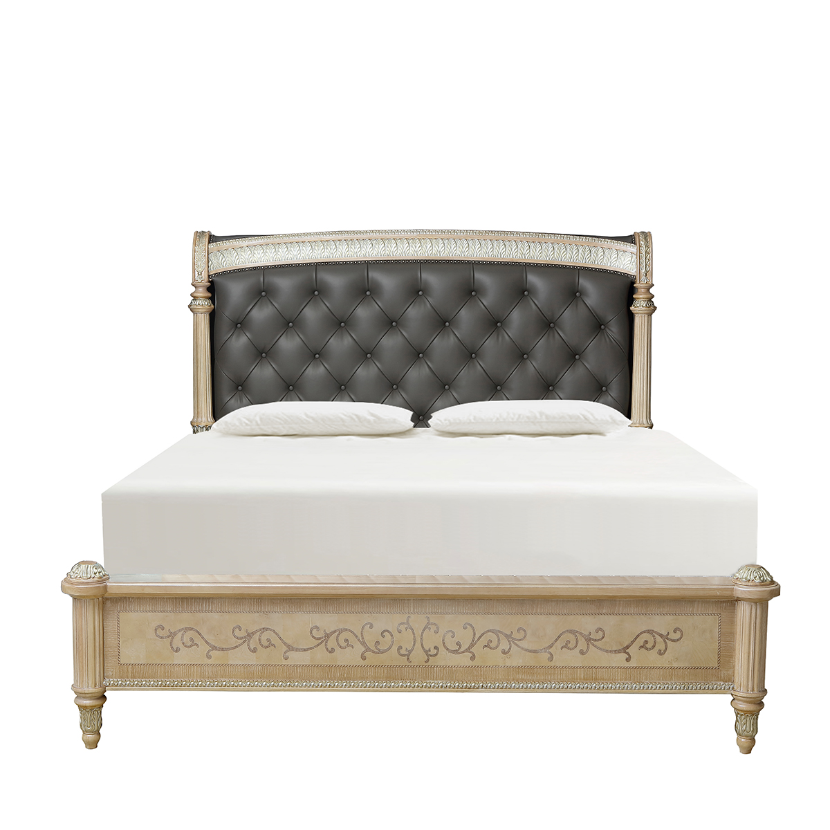 橡膠木+鵝掌楸木+環(huán)保人造板+橡木皮+白栓樹瘤、楓木、裝飾線條等木皮貼面+海綿+皮藝