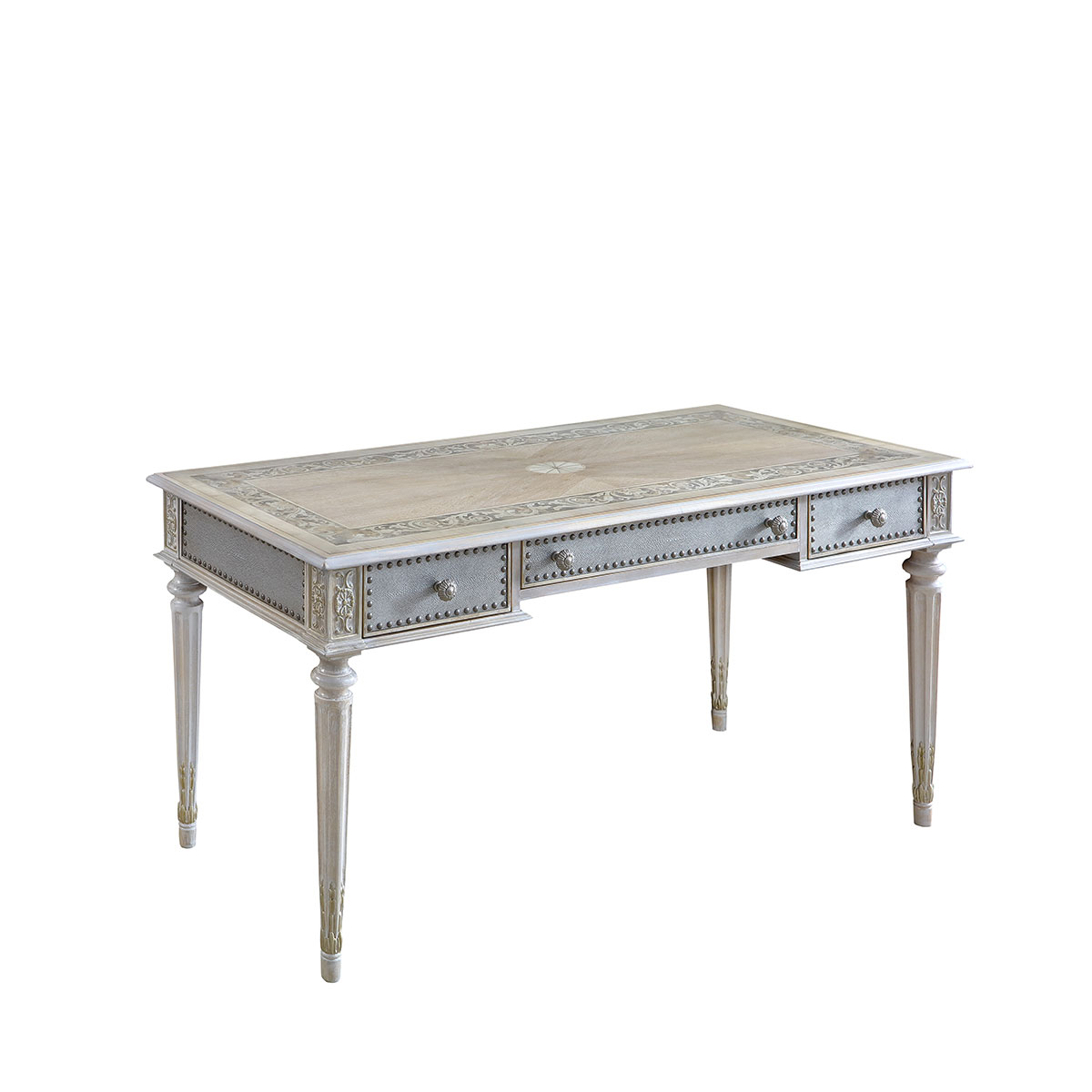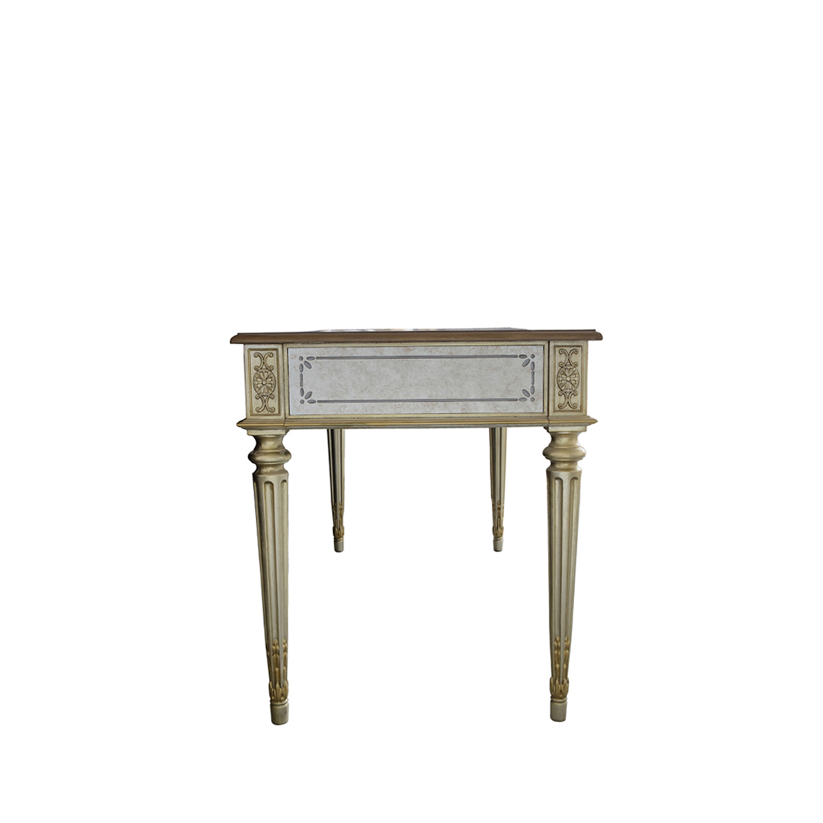 * 面板寫字區域的皮革設計讓你的書寫更流暢; * 共三個大小不同的儲物抽斗; * 中斗為鍵盤斗,左右兩邊為儲物抽斗也可做鼠標斗;抽斗內側有電線孔,抽斗兩邊裝有兩條三節消聲鐵滑軌,滑順耐用; * 腳是可拆裝的; * 腳底部裝有可調腳釘;