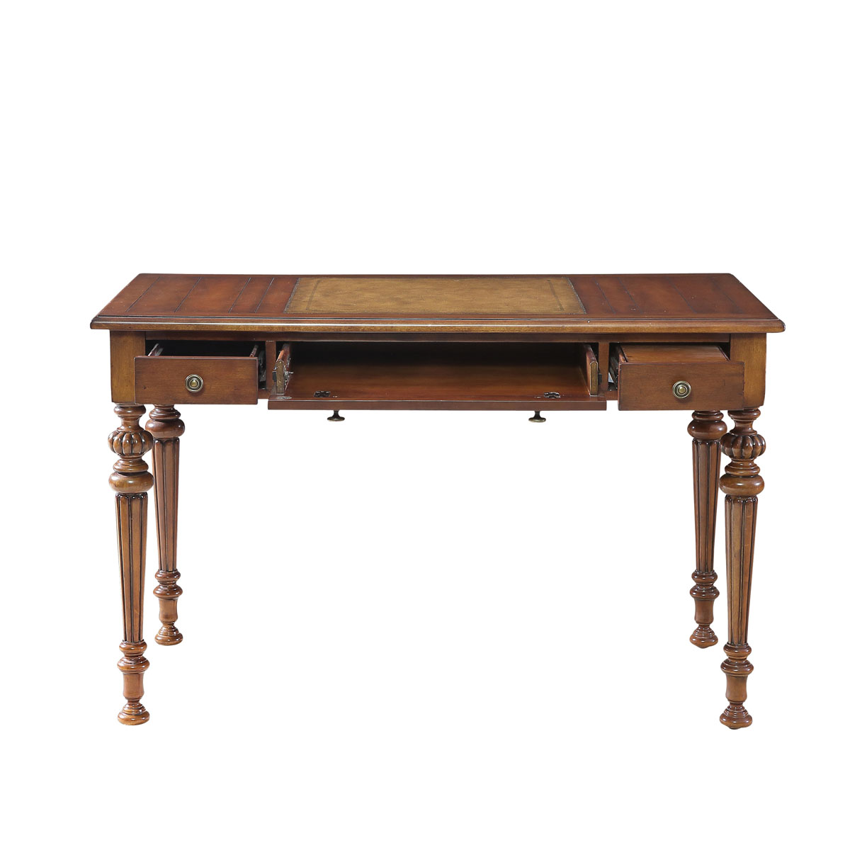 * 面板寫字區域的皮革設計讓你的書寫更流暢; * 共三個大小不同的儲物抽斗; * 中斗為鍵盤斗,左右兩邊為鼠標斗; * 腳是可拆裝的; * 腳底部裝有可調腳釘;