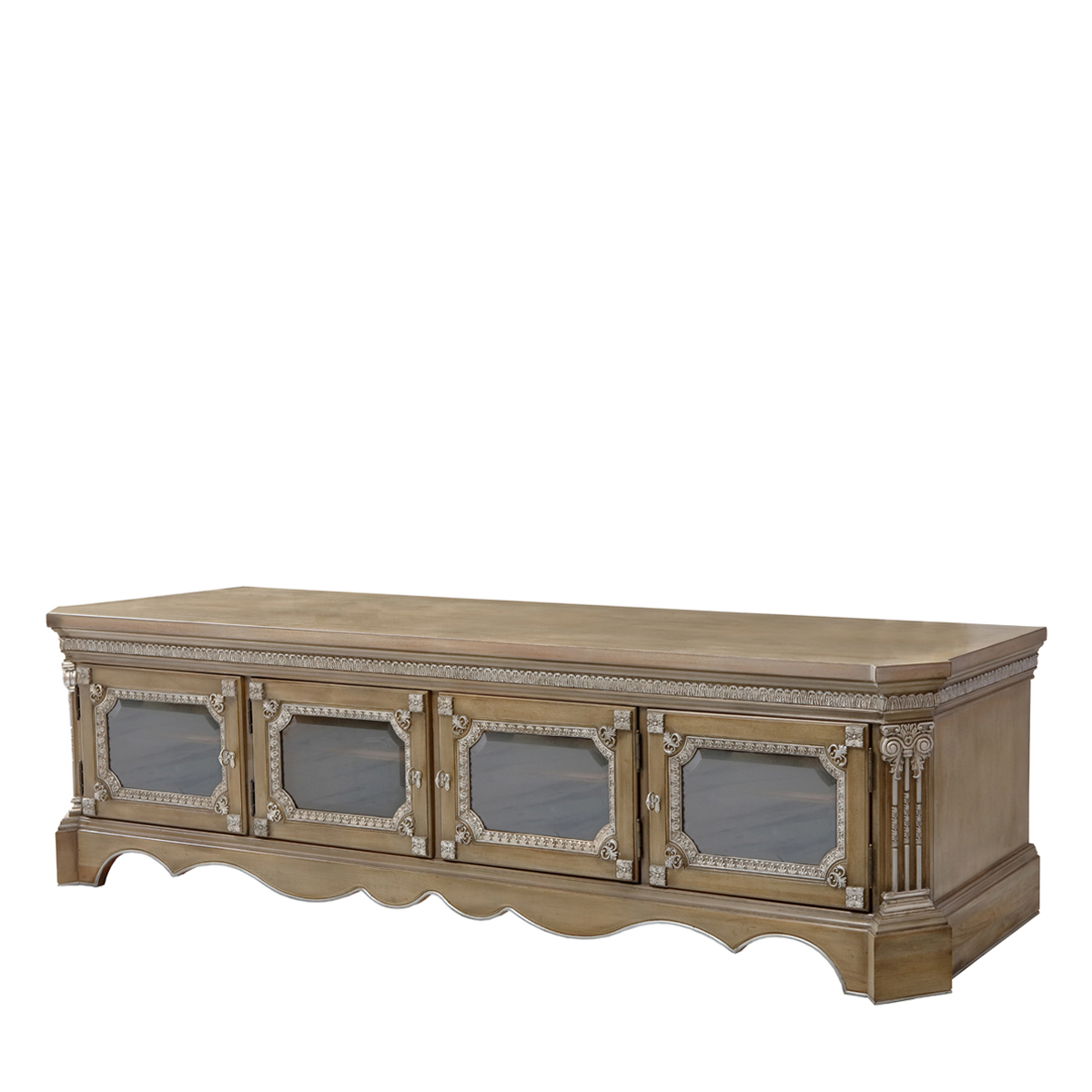 * 手工雕刻的工藝細節結實的連接技術18道以上的多步驟油漆工藝 * 四個實木框玻璃門,門內各有一塊可調層板; * 腳底部裝有可調腳釘