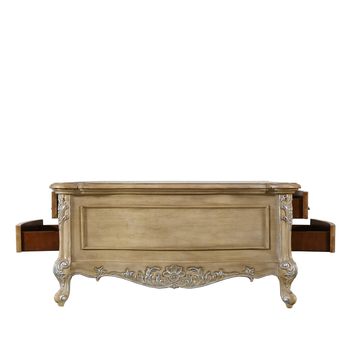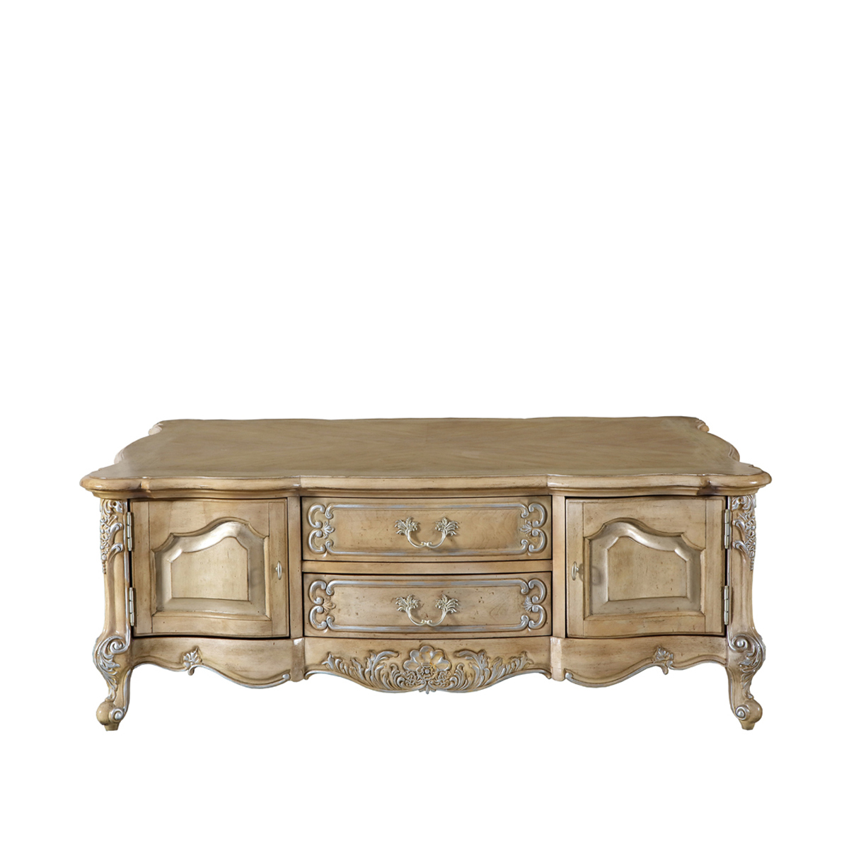 * 手工雕刻的花圃、藤蔓、阿坎瑟斯卷葉圖案和彎腳設計; * 兩個儲物抽斗,并在其底部采用經典硬木實木滑軌設計; * 門內配有可調層板;門使用包邊合頁,使門更牢固; * 腳底部裝有可調腳釘;