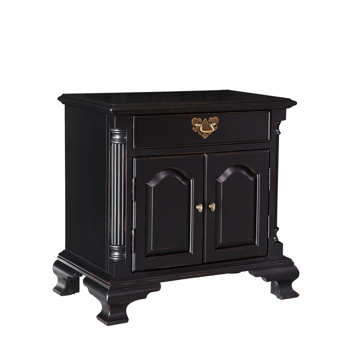 * 手工雕刻的工藝細節結實的連接技術18道以上的多步驟油漆工藝 * 一個儲物抽斗,底部采用英式經典硬木實木滑軌設計;門內有一塊可調整層板; * 純銅的拉手;