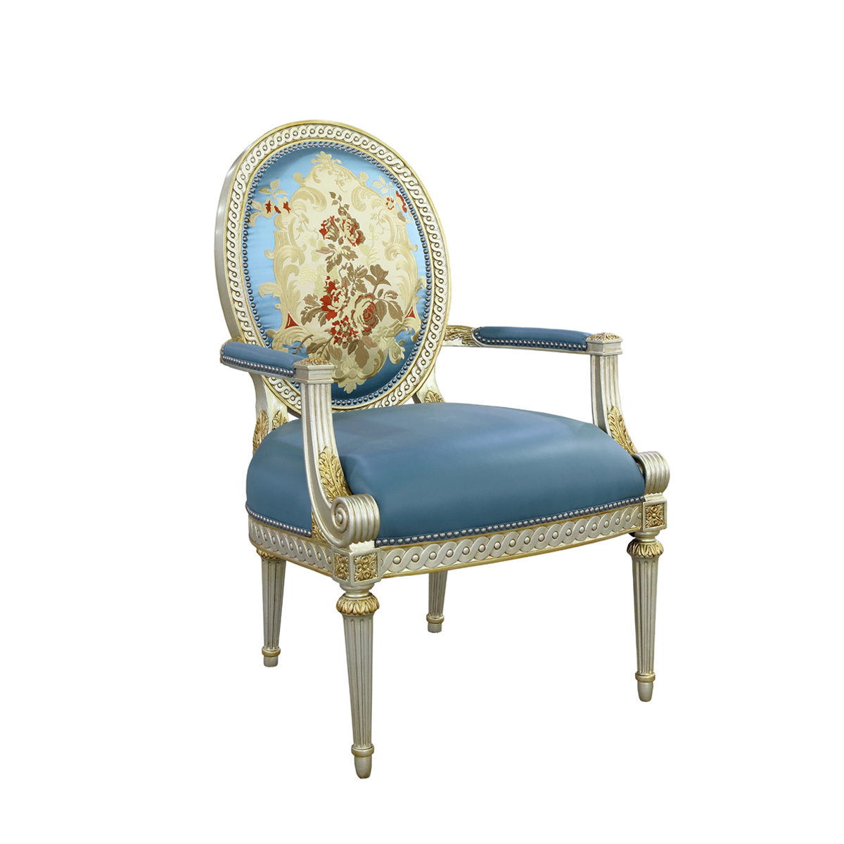 * 精細的手工雕刻配上仿金箔工藝結合十八道油漆工藝 * 坐墊和靠背包有豐厚的填充物; * 可拆裝的軟包座墊, * 提供多種面料可供選擇