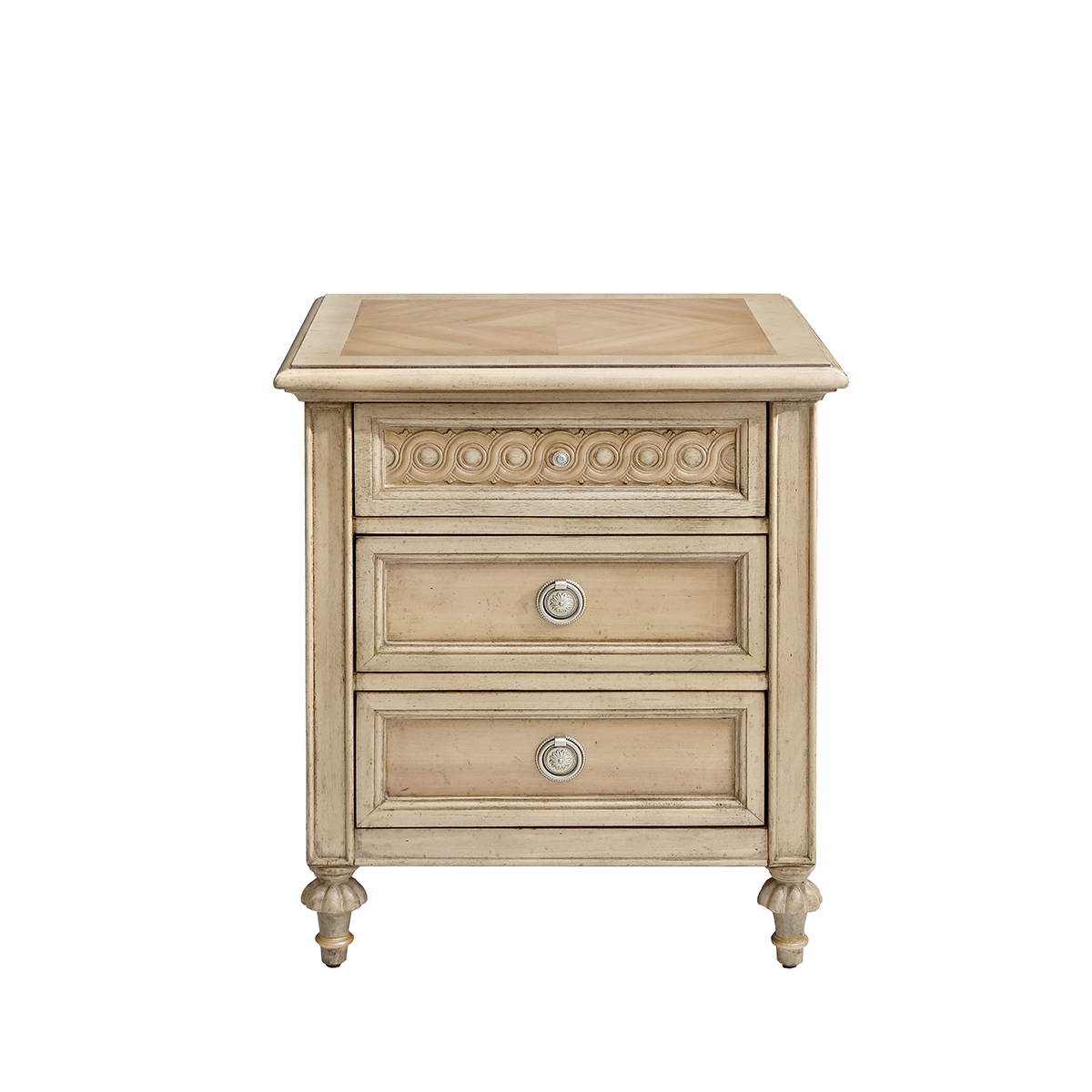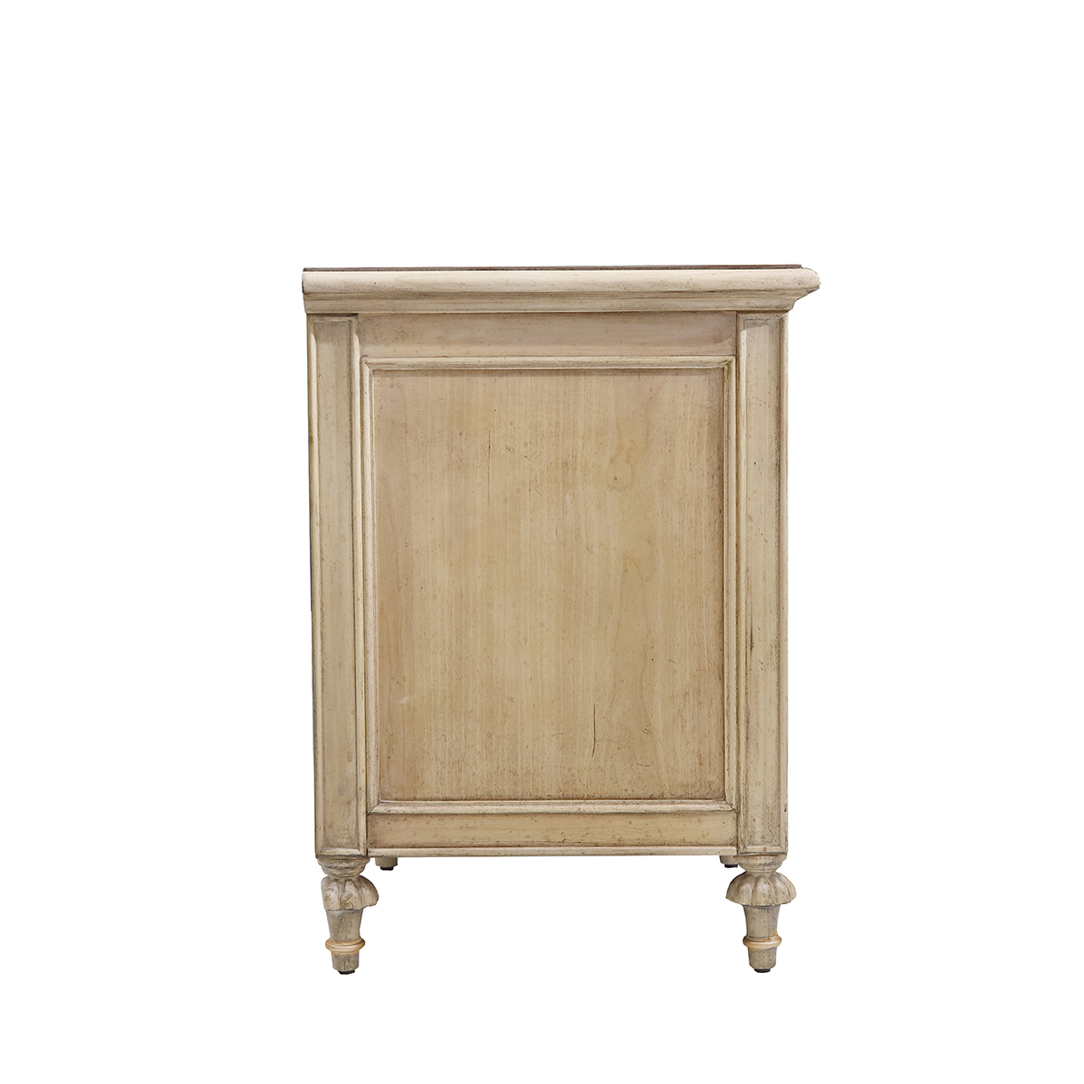 • 手工雕刻的工藝細節 • 結實的連接技術 • 有3個儲物抽斗,而在其底部采用經典硬木實木滑軌設計 * 多種木皮拼接工藝。 * 仿金箔工藝配上十八道油漆工藝讓每一件家具都是工藝品。