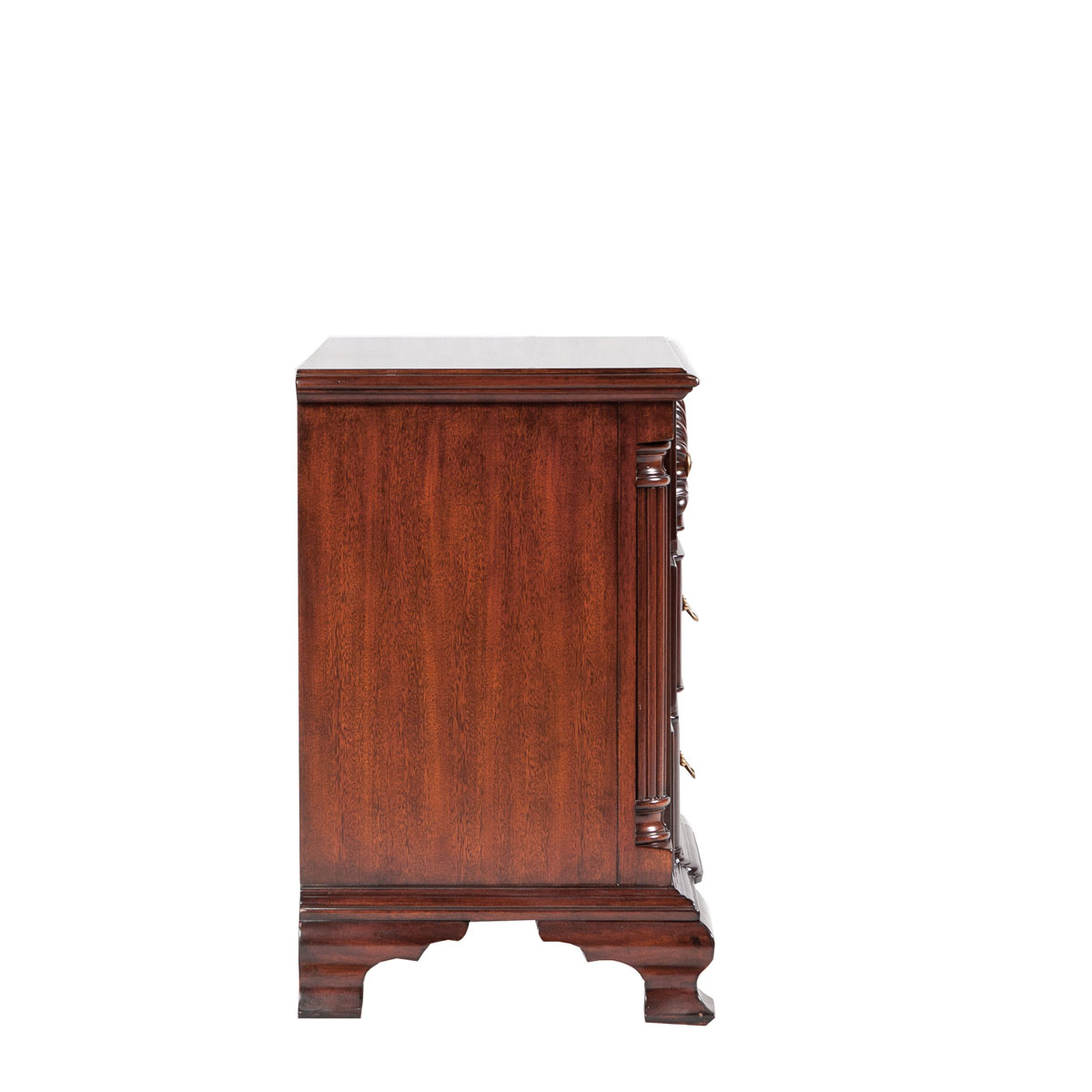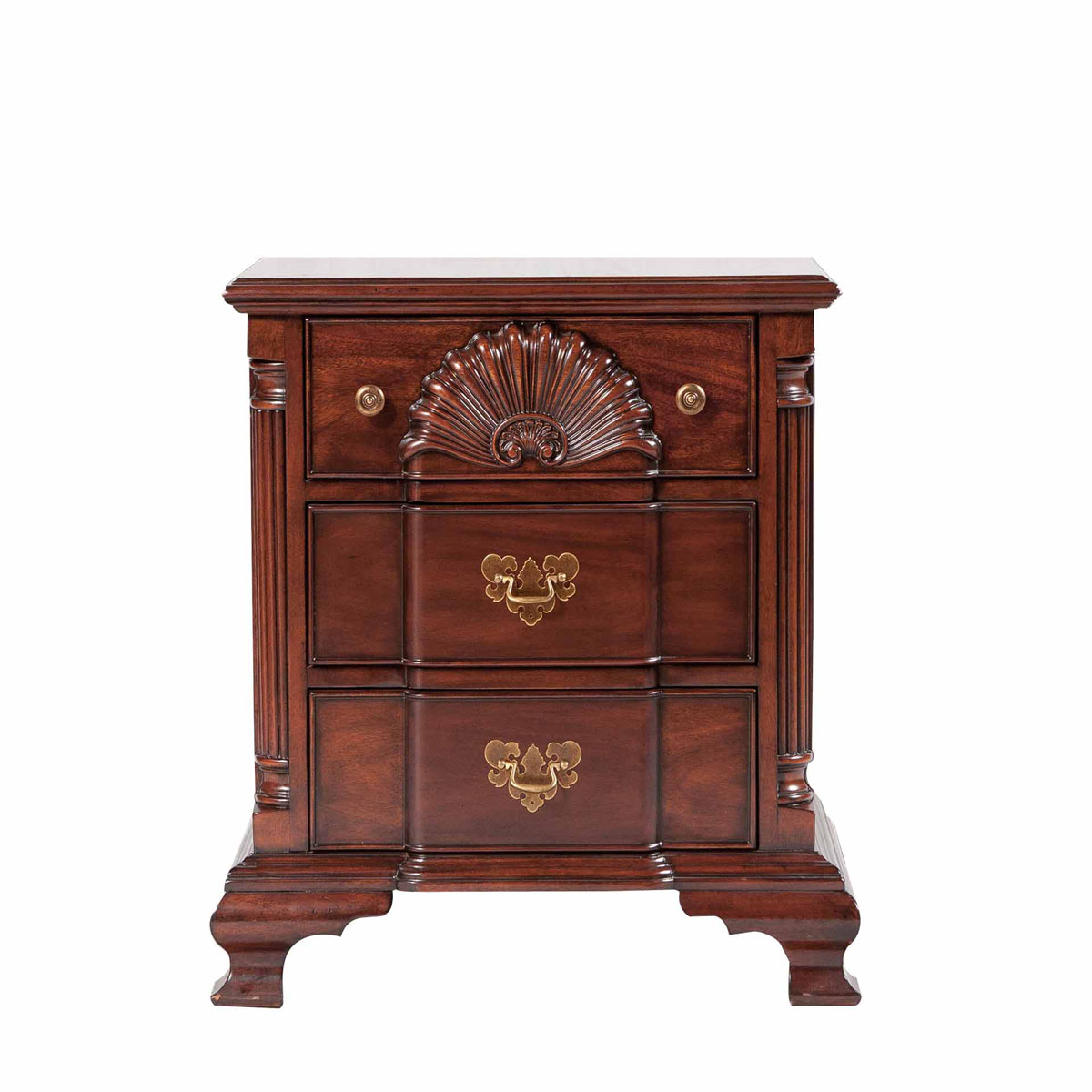 *以18世紀著名設計師 John Townsend(約翰.湯森)在70年代制造的邊柜為原形,重現其當時的輝煌。其設計元素,如象征幸運女神的貝殼形雕刻,建筑柱元素造型和蝴蝶形的黃銅拉手,充分表現了美國果敢堅毅的開拓精神與多元融合的美式家具特色。