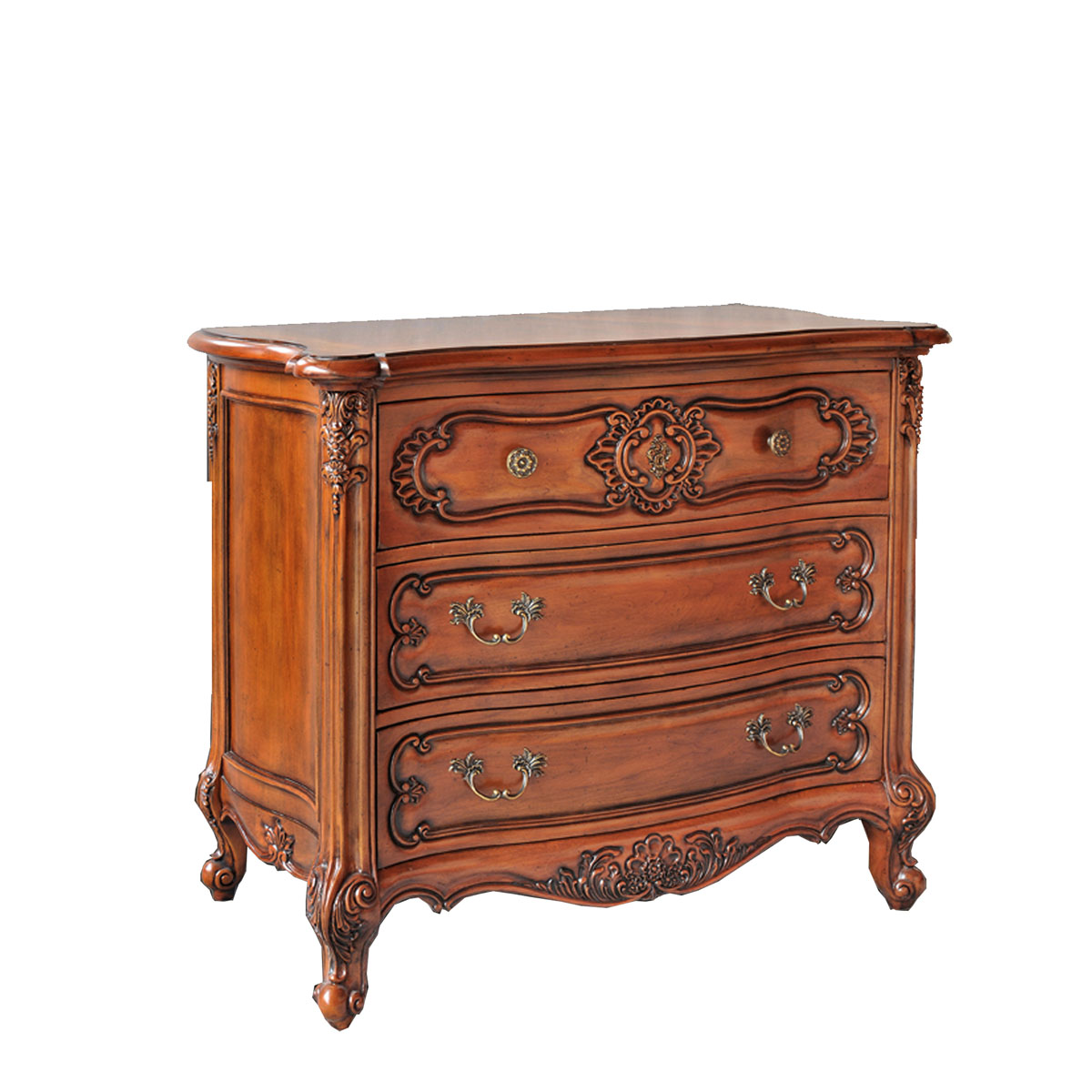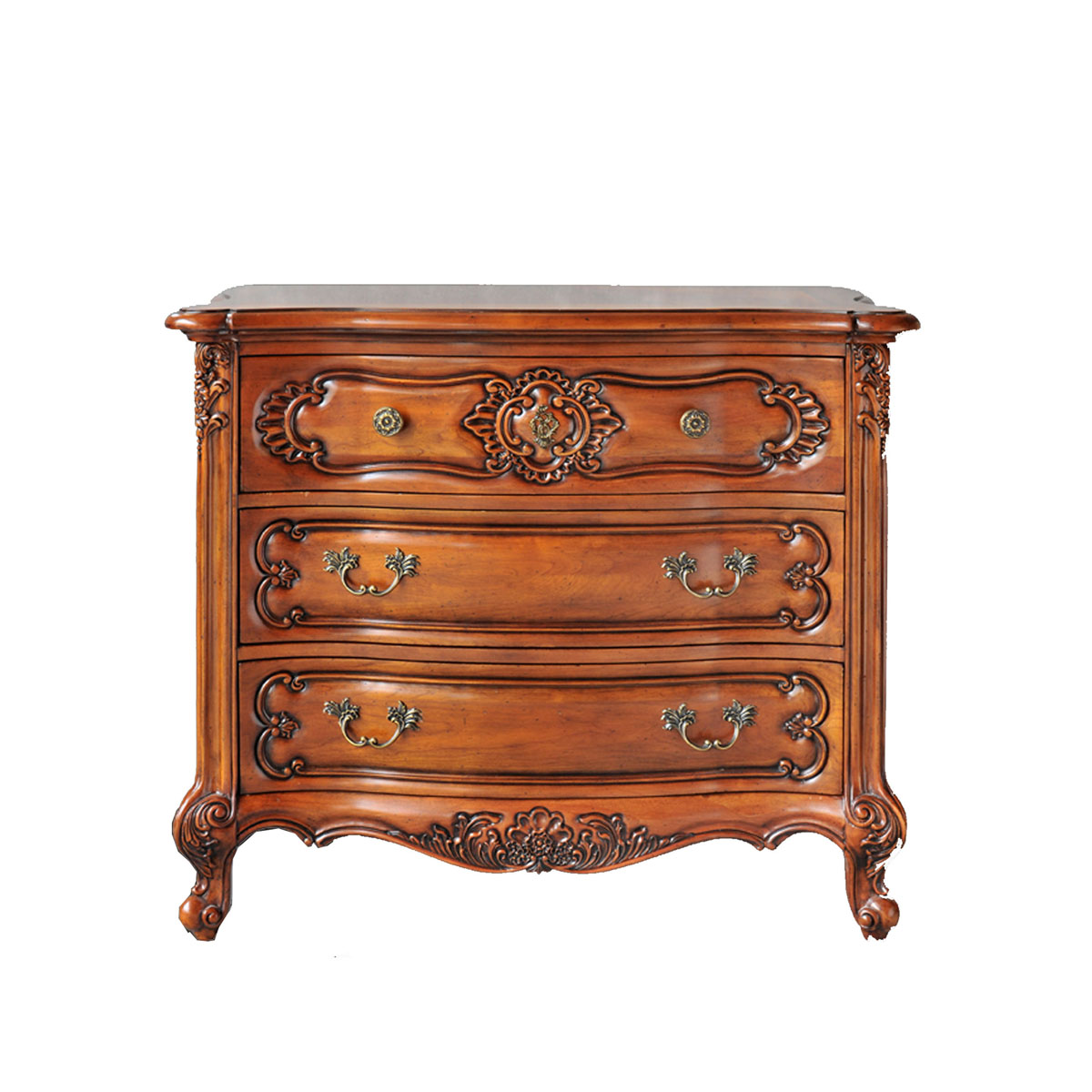 * 手工雕刻的花圃、藤蔓、阿坎瑟斯卷葉圖案和彎腳設(shè)計 * 結(jié)實的連接技術(shù) * 有三個儲物抽斗,并在其底部采用經(jīng)典硬木實木滑軌設(shè)計