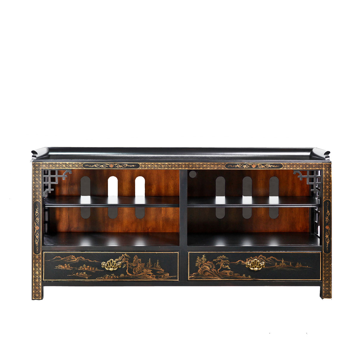 * 既可做為沙發桌,也可以用做玄關柜或電視柜; * 兩個儲物抽斗,底部采用硬木實木滑軌; * 開空的部分有兩塊可調層板; * 背板上的通風孔便于做為電視柜使用時散熱; * 腳底部裝有可調腳釘;