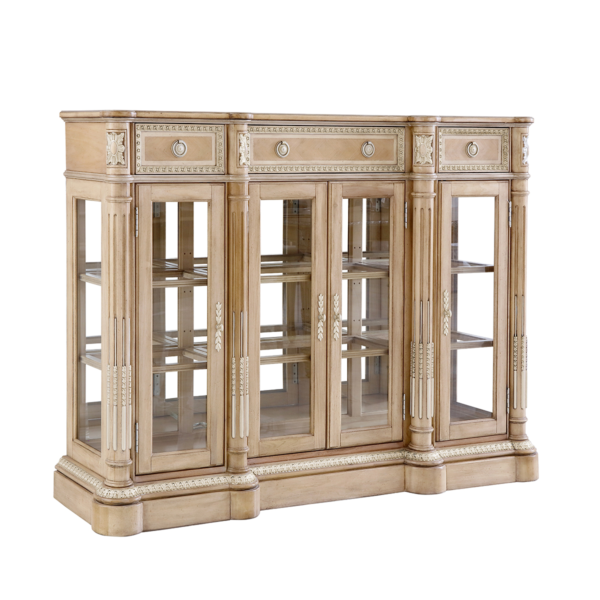 * 為表現法國路易時期的莊嚴和浪漫,以法國凡爾賽宮為設計元素。使用歌頌路易十四時期的太陽花雕刻,配以建筑柱雕刻與鉆石圖案木皮貼面,完美演繹了法式宮廷家具的奢華尊貴。