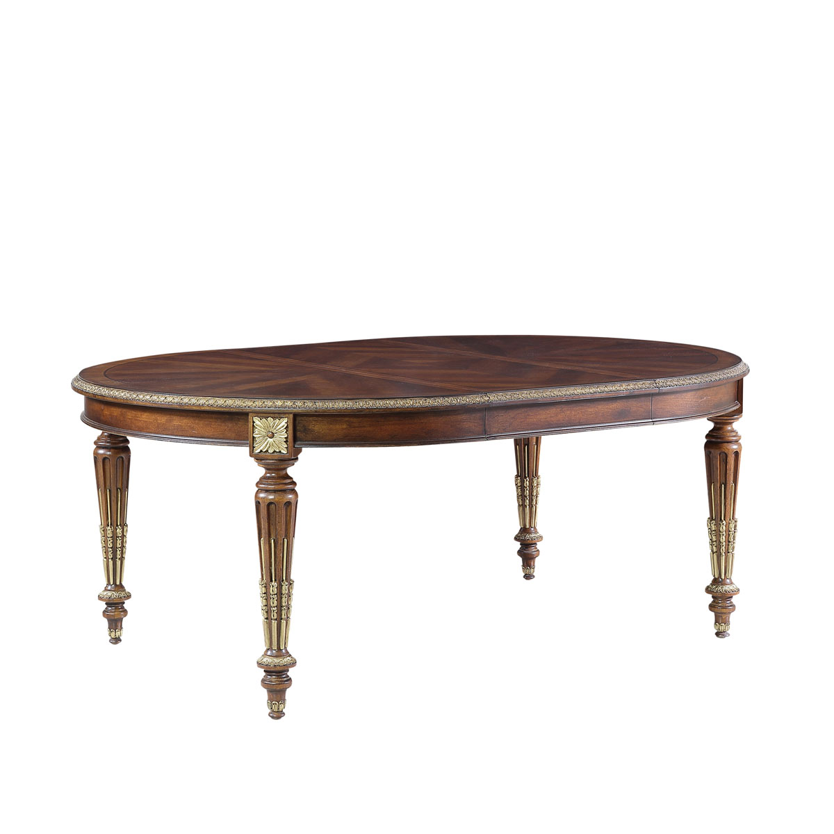 * 為表現法國路易時期的莊嚴和浪漫,以法國凡爾賽宮為設計元素。使用歌頌路易十四時期的太陽花雕刻,顯示其王權穩固地位的錐形腿腳設計;配以鉆石圖案木皮貼面、可調節的伸板設計和貼金工藝,完美演繹了法式宮廷家具的奢華尊貴。
