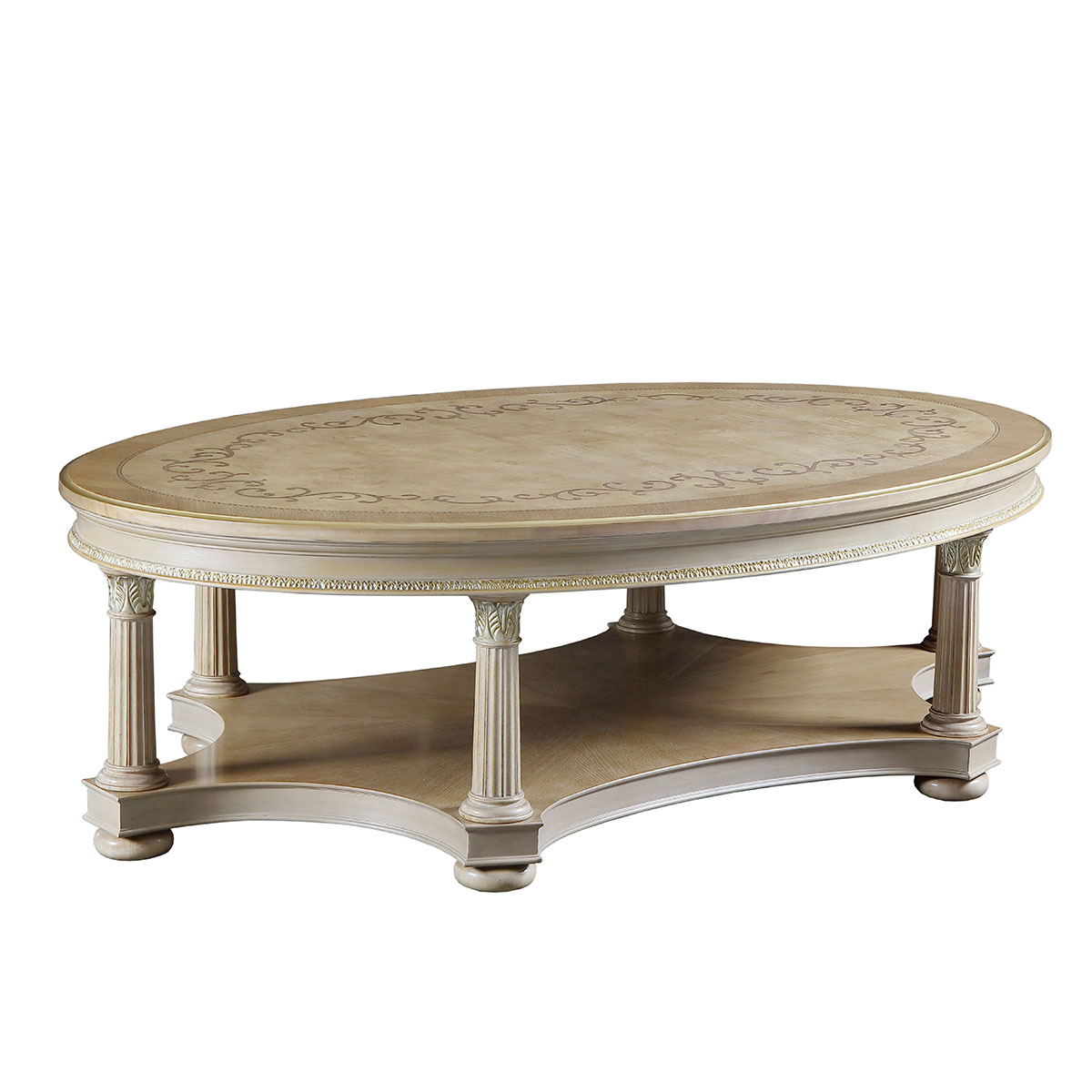 * 以17世紀意大利帝國EMPIRE風格為設計元素,結合意大利人重生活更懂藝術的品位追求,從意大利的宮廷家具和羅馬的古建筑中汲取靈感,使用華麗莊嚴的 Corinthian Order(科林斯式)羅馬雕刻柱與描金工藝結合;配以阿坎賽斯葉狀雕刻與精美的手工拼花,精彩展現了意式家具奢華絢麗而又極富藝術人文氣息的迷人魅力。
