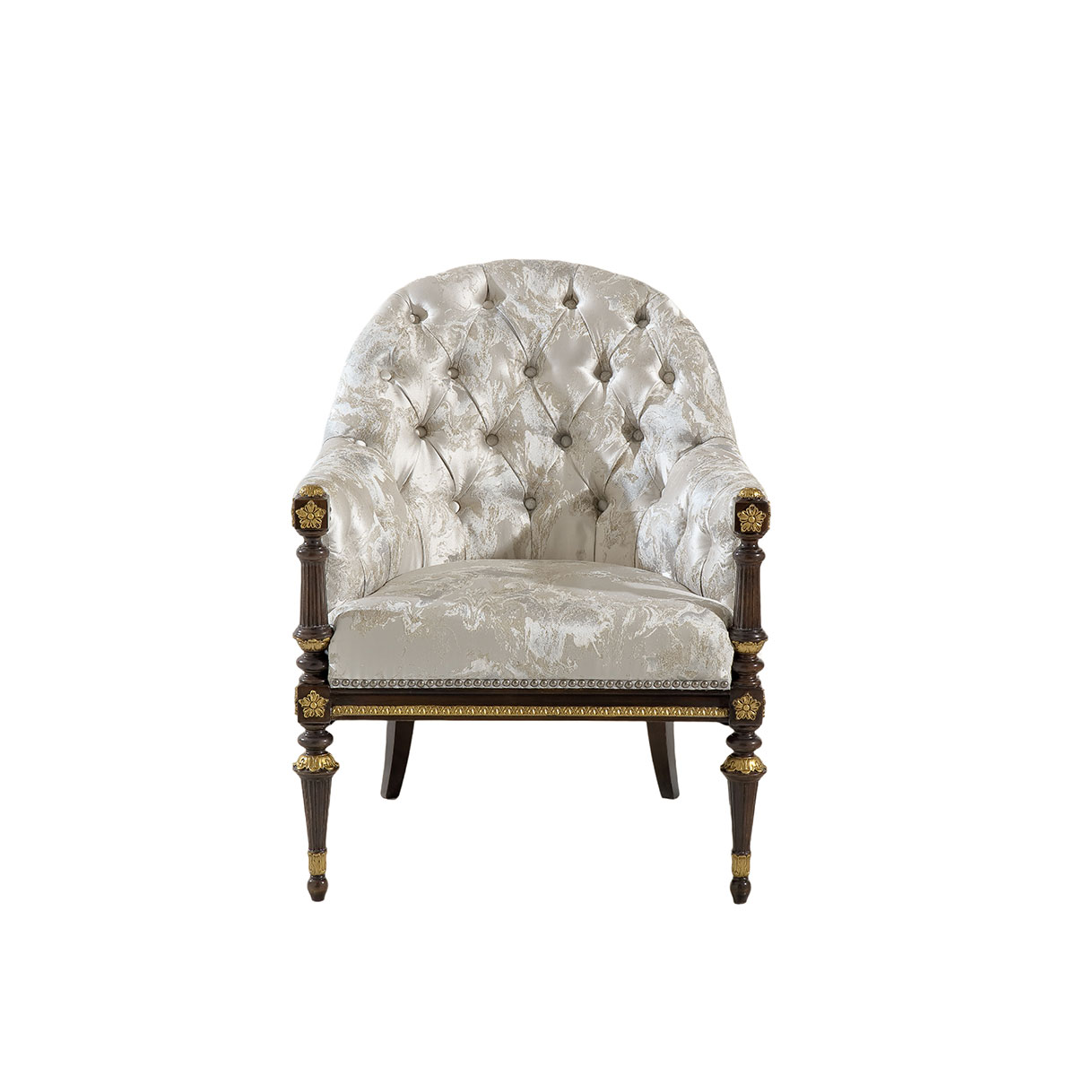 * 細致的拉扣工藝; * 椅背前后方及坐墊包有豐厚的填充物; * 底部裝有可調腳釘;