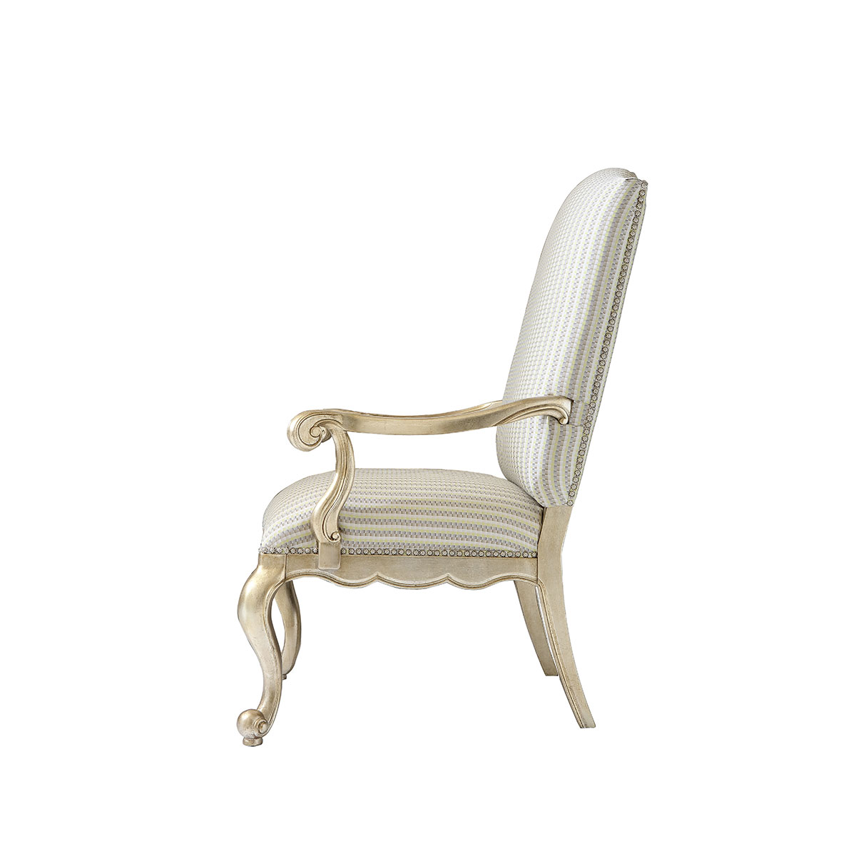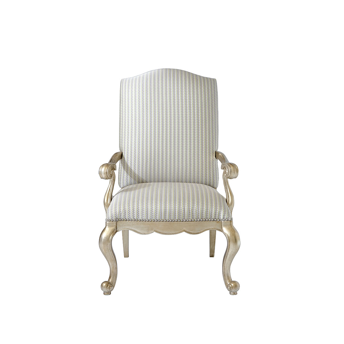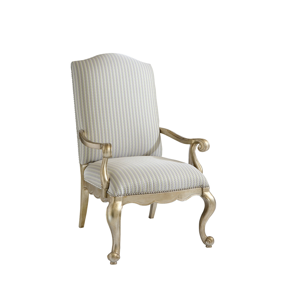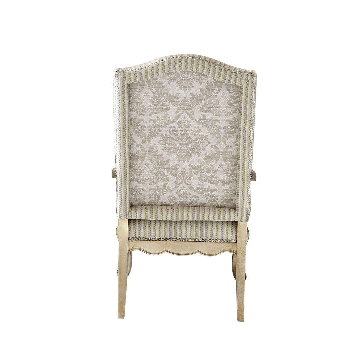 * 一款集合法式元素包括Camelback Silhouette(駝峰輪廓)造型、旋渦形扶手和S形彎腳的高背休閑椅,并配上觸感舒適的布藝和包有豐厚的填充物坐墊和靠背;