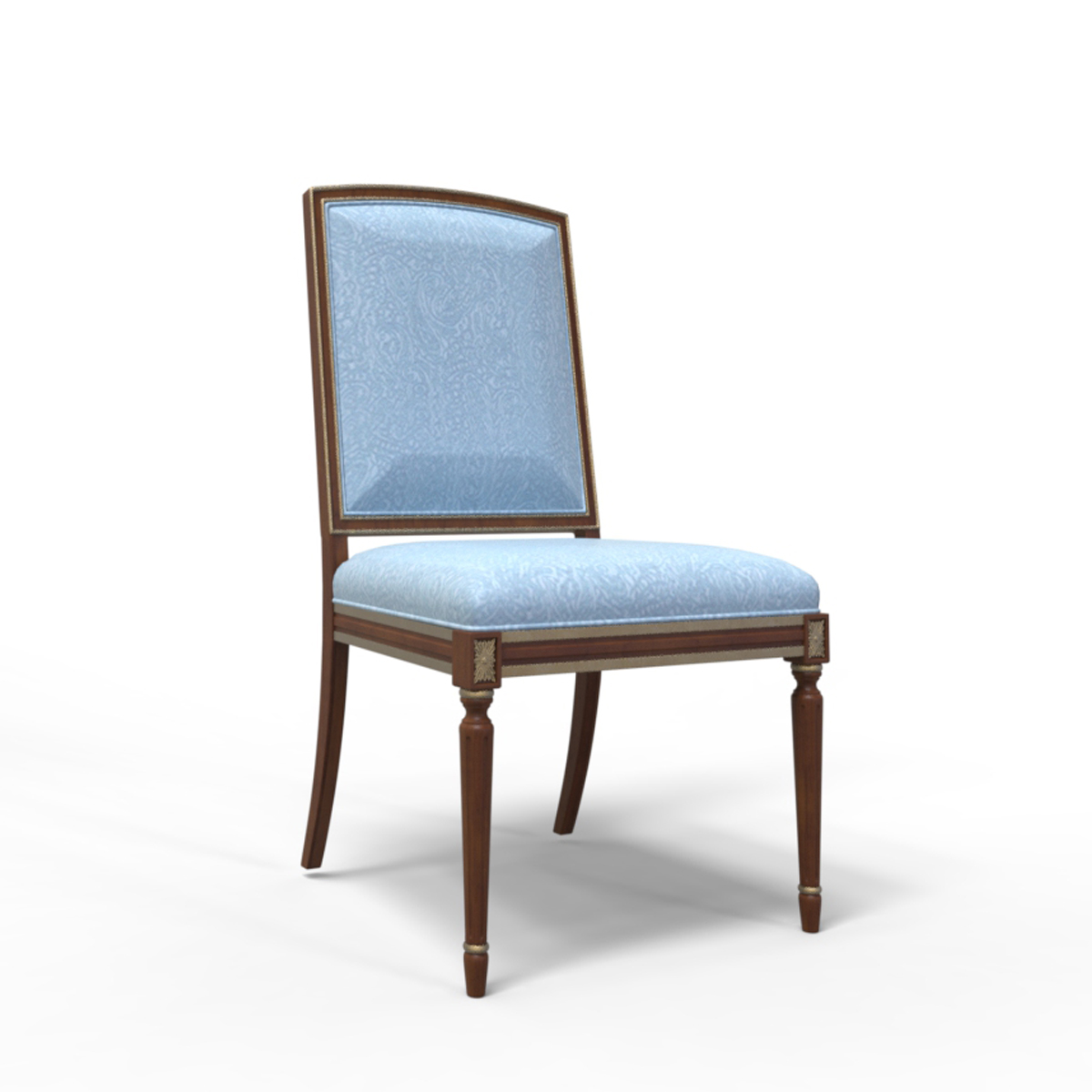 普羅旺斯單椅其Sheraton(謝拉頓風格)的車織腿與古樸大方的原木色調珠聯璧合,傳統方型背配以細膩的雕刻腿腳,營造出年代久遠的歷史感;再配以舒適的軟包設計, 使藝術與生活結合, 盡顯普羅旺斯的休閑愜意。