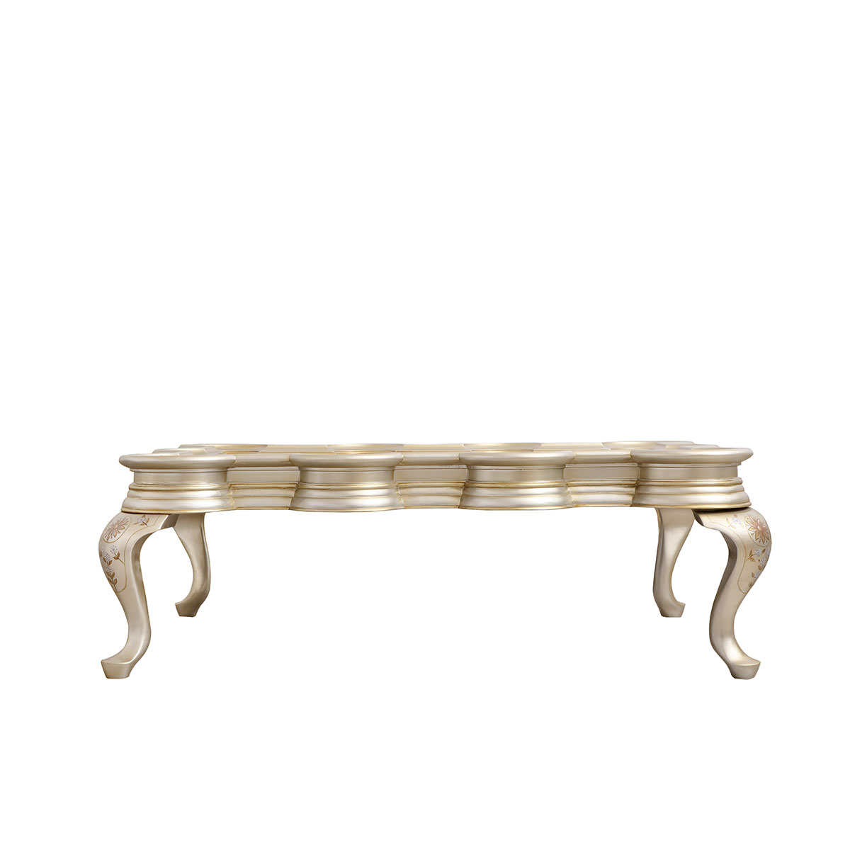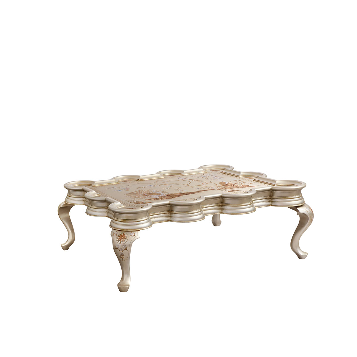 * 為表現英國皇室在中西方文化交流時期的重要地位,以英國溫莎堡為設計元素。使用高貴的孔雀彩繪主題和安妮女王時期的彎腿設計,彰顯了尊貴的古雅品味。搭配不規則的造型和極具中國情調的黑金色,經典再現了18世紀英國皇室熱衷東方元素的家居文化潮流。