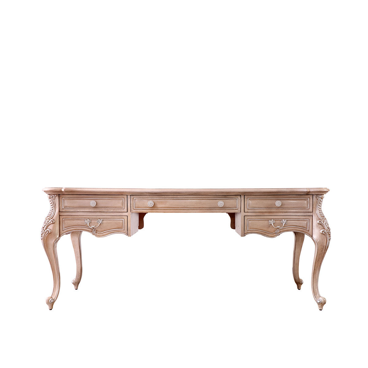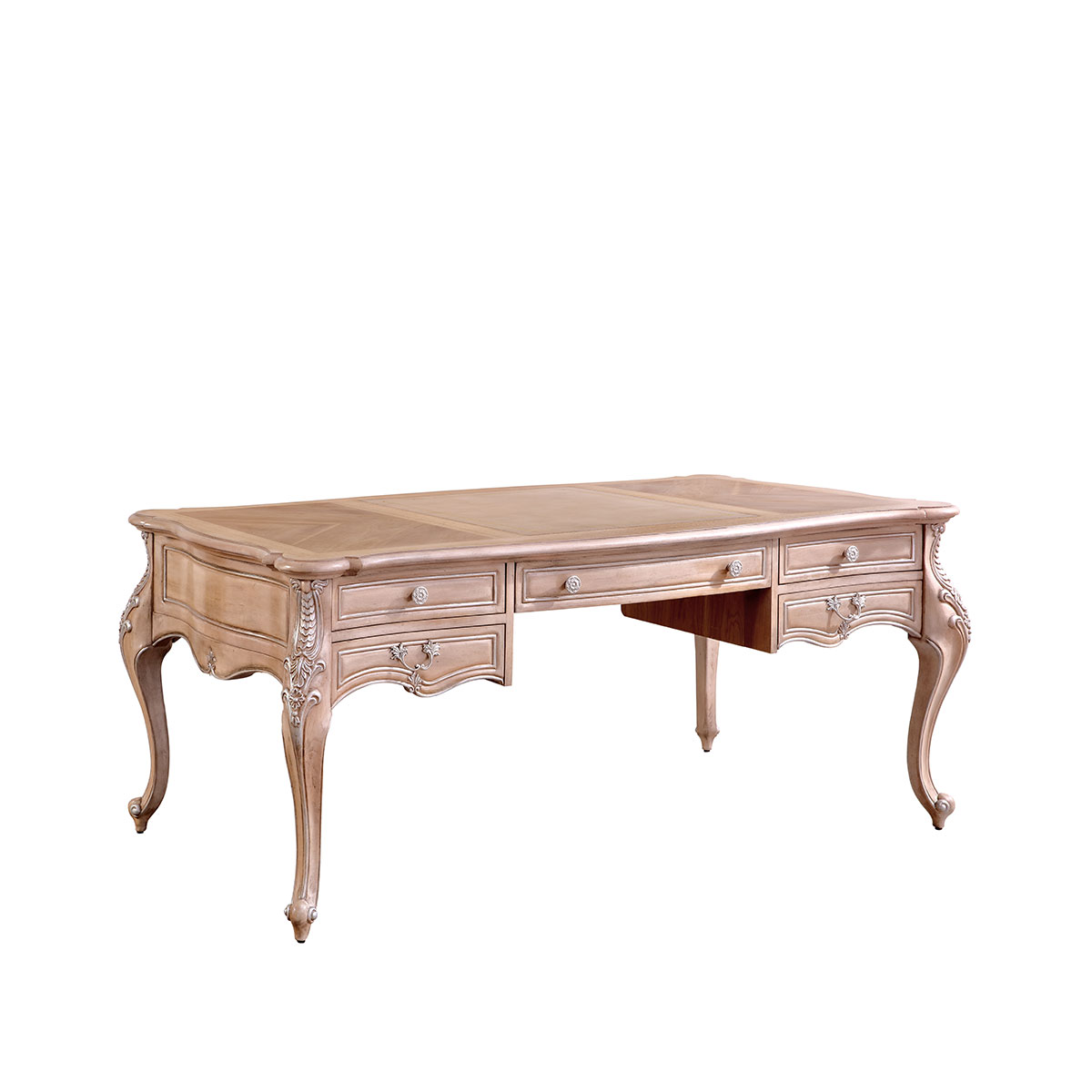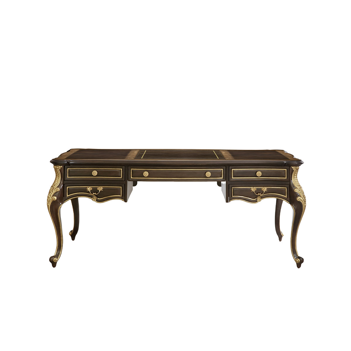 * 面板寫字區域的皮革設計讓你的書寫更流暢; * 共五個大小不同的儲物抽斗; * 中斗為鍵盤斗,右邊為儲物抽斗也可做鼠標斗;抽斗內側有電線孔,抽斗兩邊裝有兩條三節消聲鐵滑軌,滑順耐用; * 腳底部裝有可調腳釘;