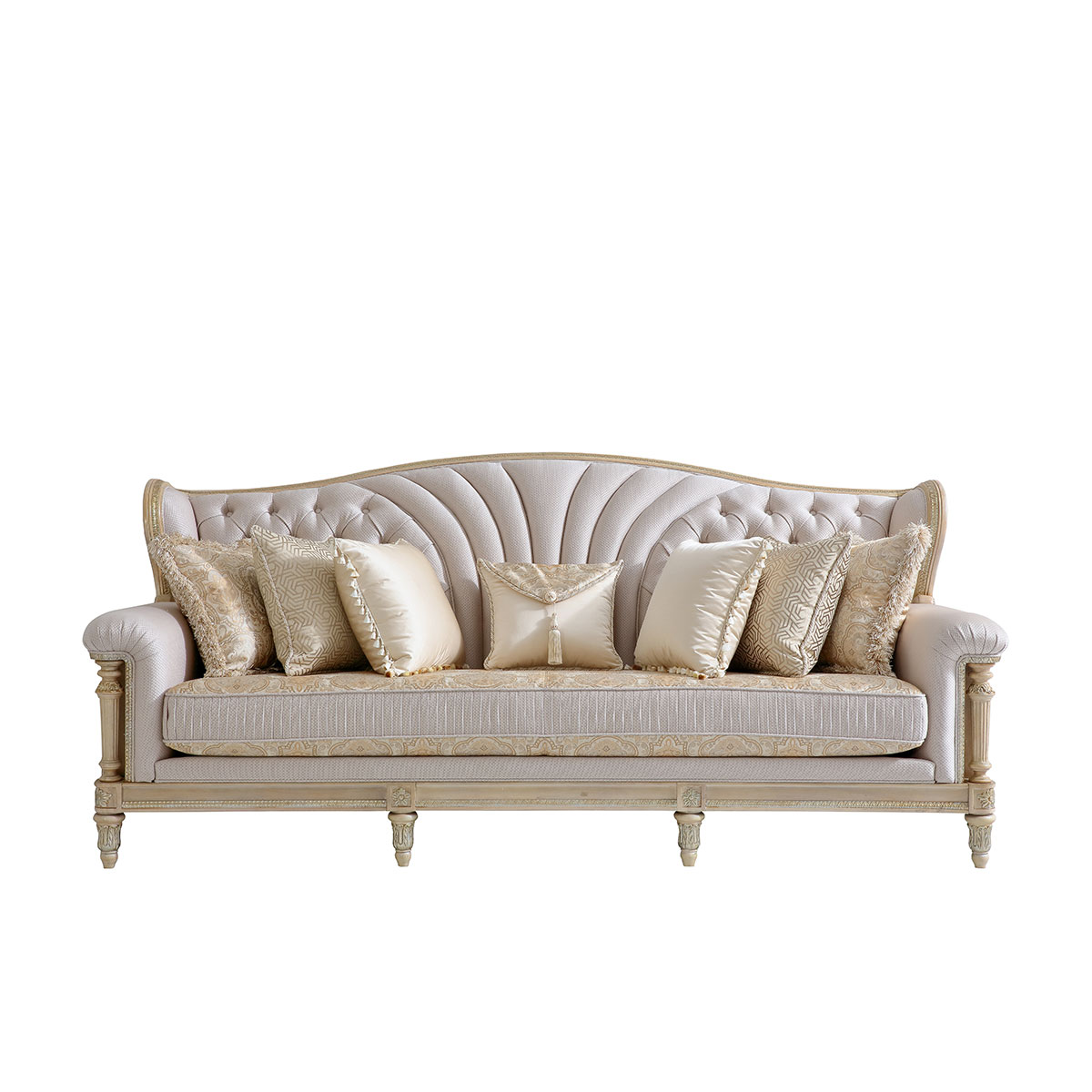 橡膠木+鵝掌楸木+環保人造板+橡木皮+白栓樹瘤、楓木、裝飾線條等木皮貼面+海綿+布料