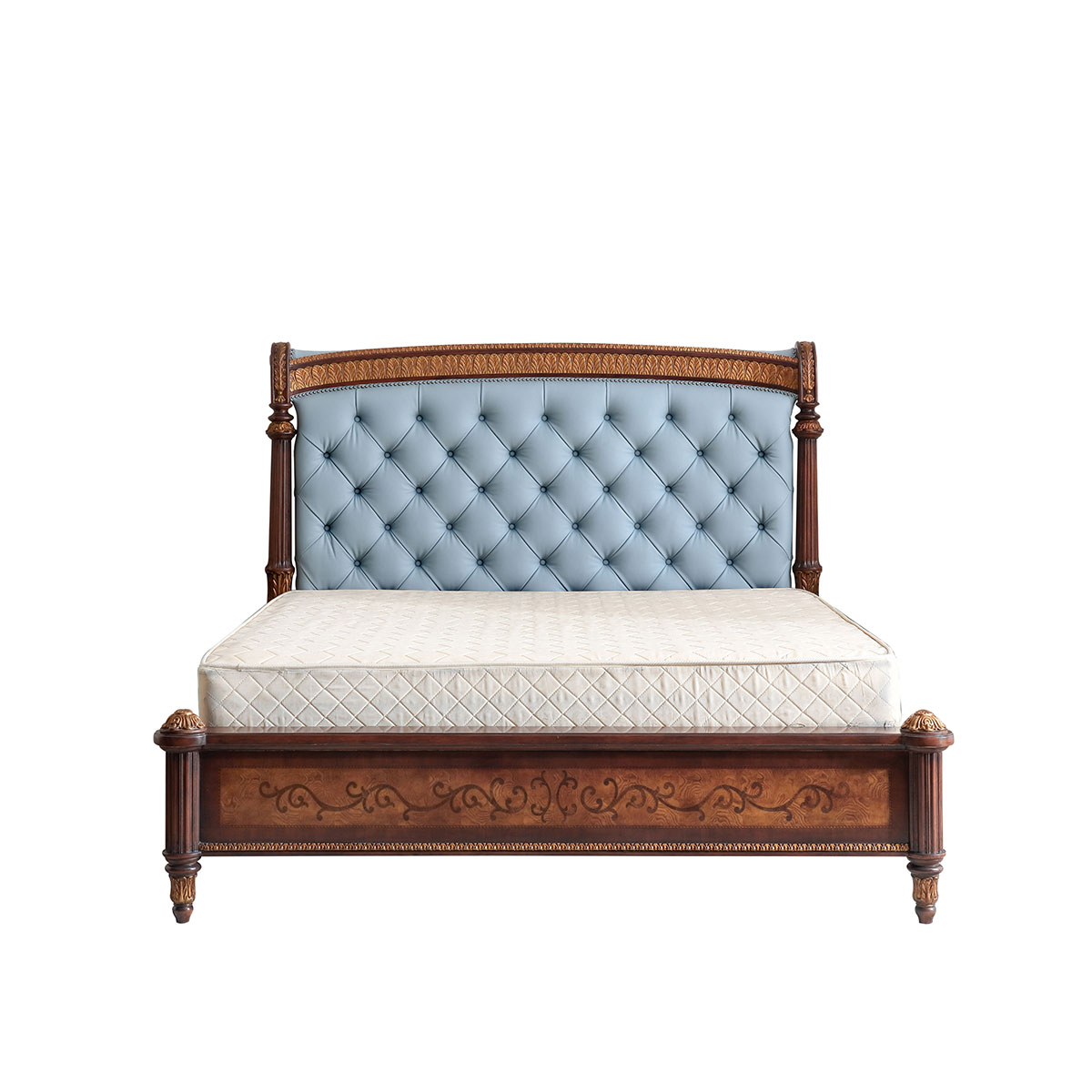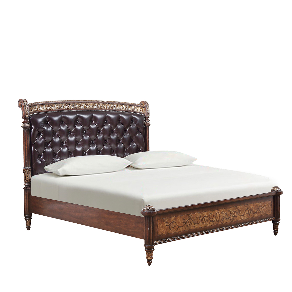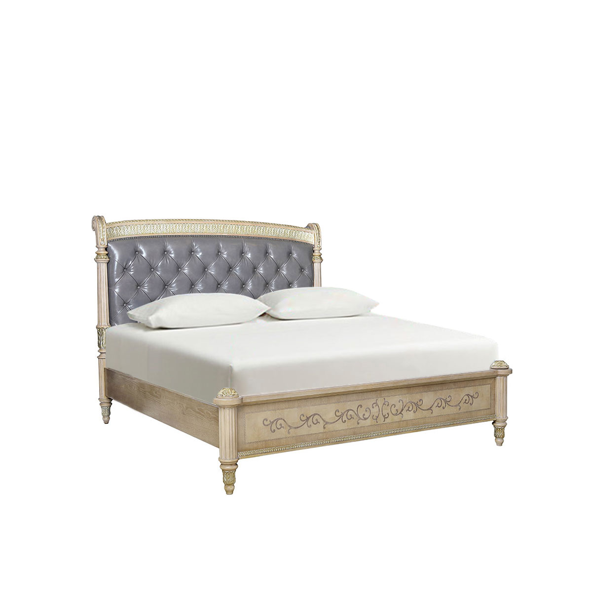 * 延伸的床架布滿手工實木雕刻的花環,卷葉和網眼圖案 * 4只花形雕刻腳 * 共3種尺寸選擇可適用多種戶型 * 中間使用優質夾板鋪平,延長床墊的使用年限. * 床頭板包有豐厚的填充物 * 床頭板可提供多種面料可供選擇;
