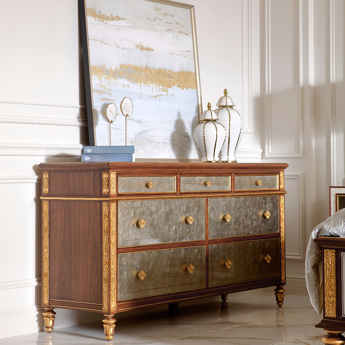 橡膠木+環保人造板+黑胡桃+艷陽花+櫻桃木等木皮貼面+藝術玻璃