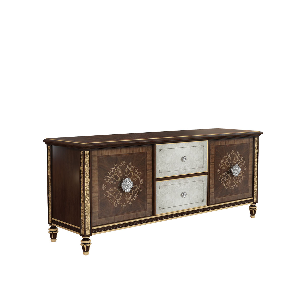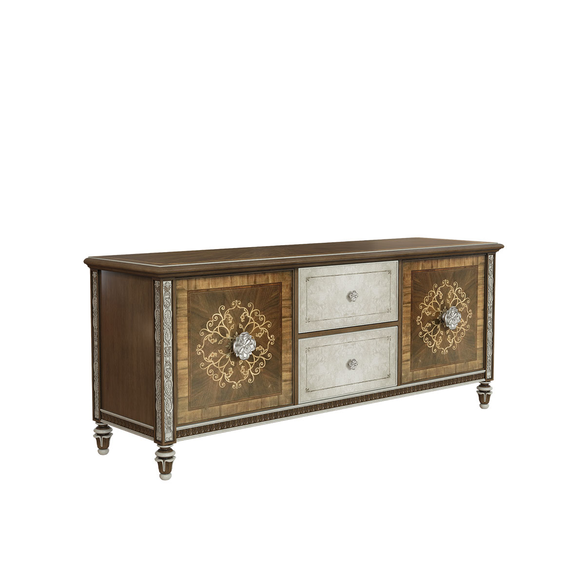 橡膠木+環(huán)保人造板+黑胡桃+艷陽花+櫻桃木等木皮貼面+藝術(shù)玻璃