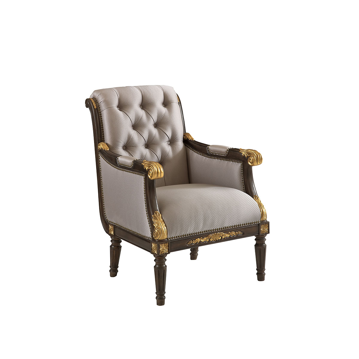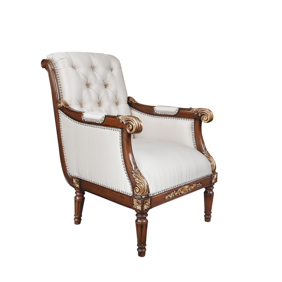 卷葉雕刻的扶手設計、舒適的椅背角度、細致的雕刻和貼金箔工藝。這款休閑椅是QueenVictoria(維多利亞女皇)時期的設計,我們還可以在她晚年的照片中找到它的蹤影。并配上觸感舒適的布藝和包有豐厚的填充物坐墊和靠背。