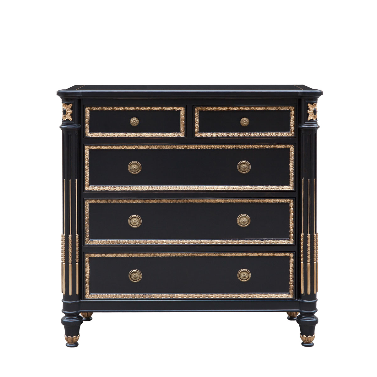 * 為表現法國路易時期的莊嚴和浪漫,以法國凡爾賽宮為設計元素。使用歌頌路易十四時期的太陽花雕刻;路易十六時期的建筑柱雕刻;顯示其王權穩固地位的錐形腿腳設計、古銅色的球形把手和貼金工藝,完美演繹了法式宮廷家具的奢華尊貴。