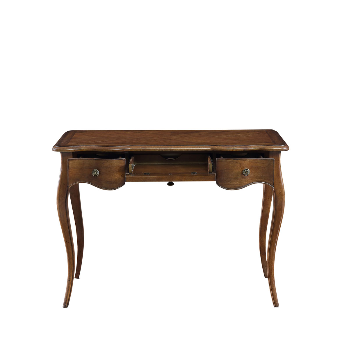蜿蜒的裙板設計,仿佛林間的溪流,歡快地跳躍著,紅棕木色澤古樸,大自然的氣息撲面而來,勾勒出一個充滿鳥語花香的世外桃源;洛可可風格彎腿設計帶來法式的柔美。
