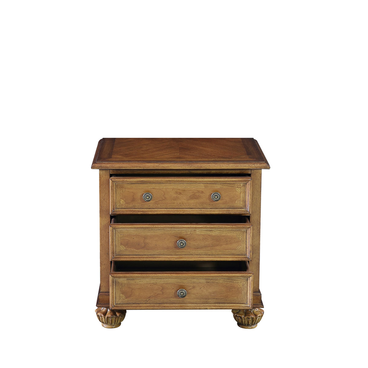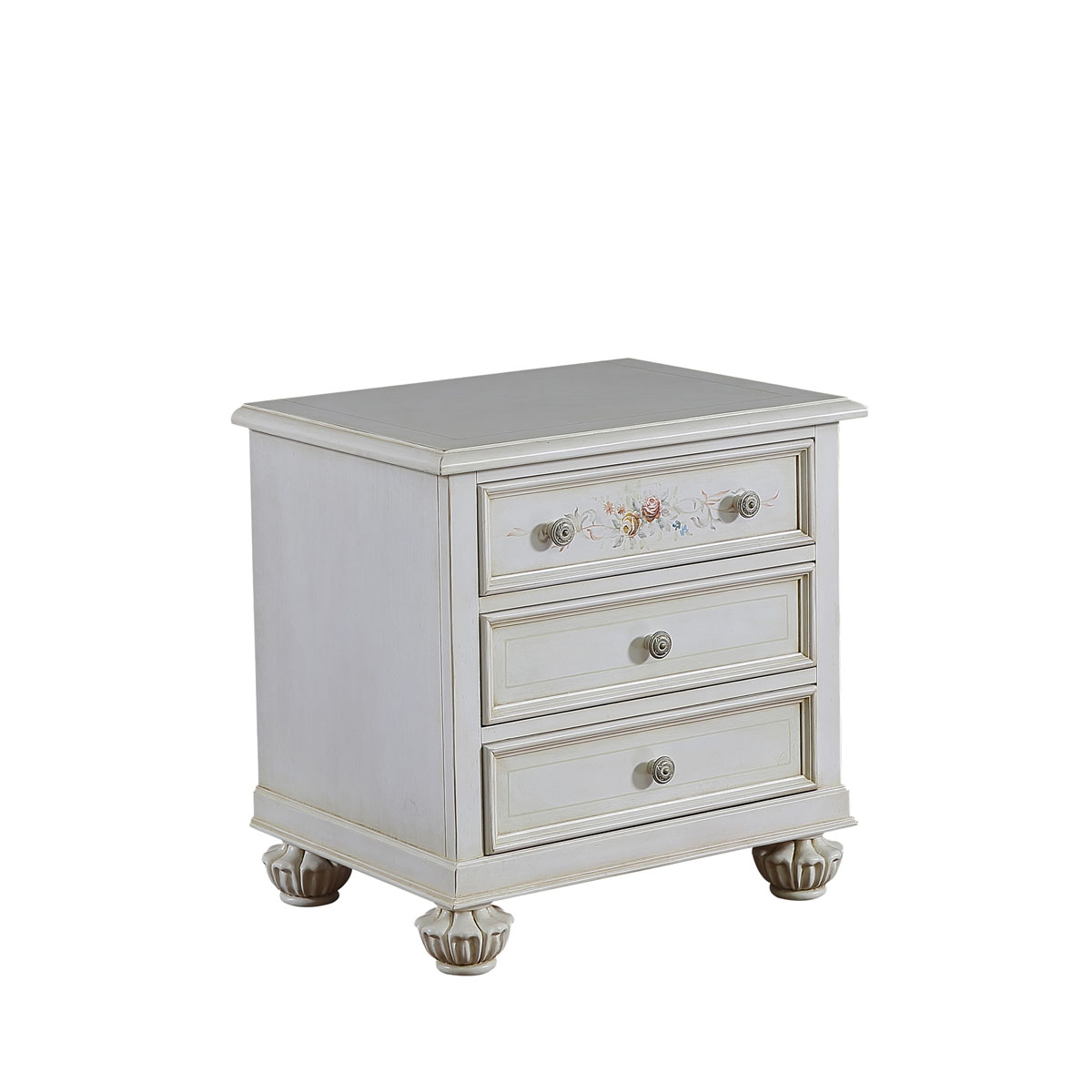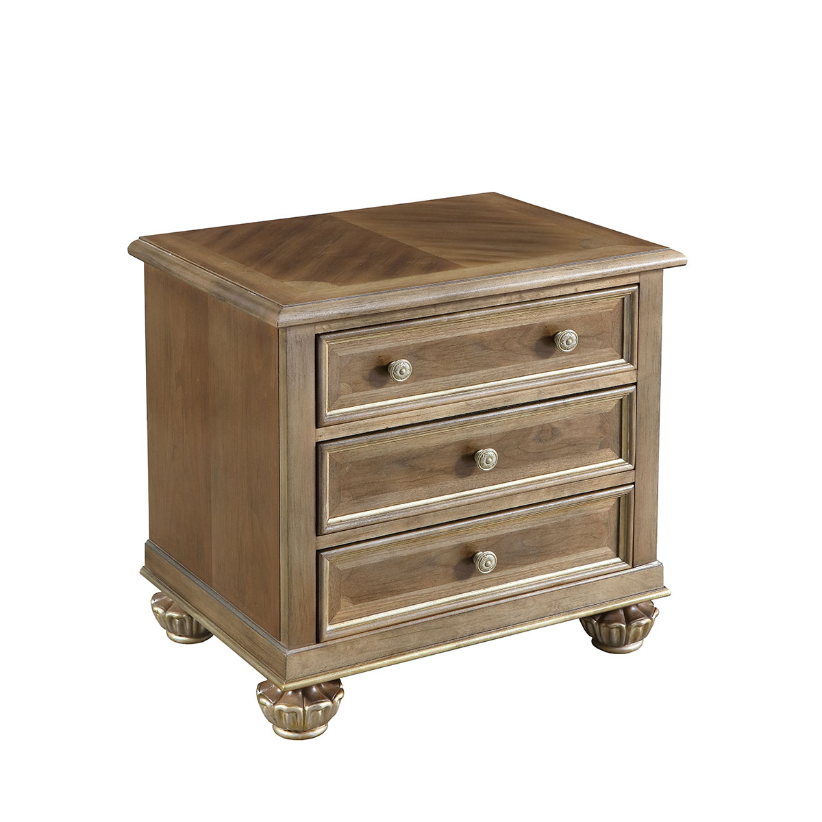 * 手工拼花藤蔓效果,用多種上等木皮拼制而成 * 三個(gè)儲(chǔ)物斗,底部采用經(jīng)典的硬木實(shí)木滑軌; * 腳腳底部裝有可調(diào)腳釘;