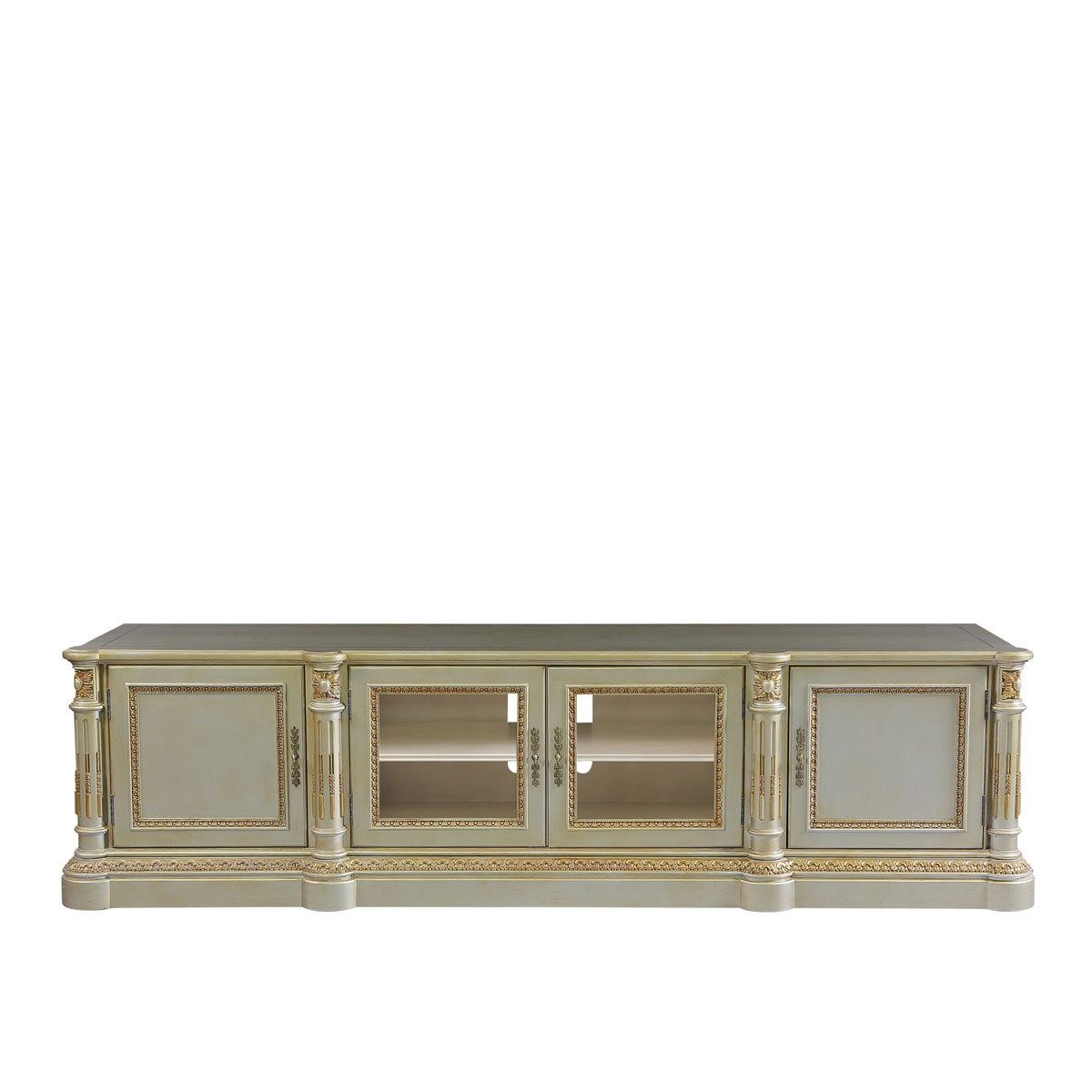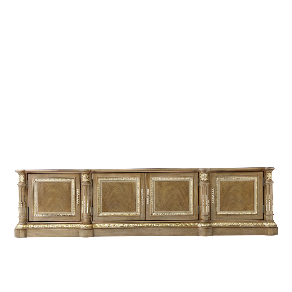 *為表現法國路易時期的莊嚴和浪漫,以法國凡爾賽宮為設計元素。使用歌頌路易十四時期的太陽花雕刻,優雅的黑金色手繪山水畫與鉆石圖案實木薄片拼貼工藝,完美演繹了法式宮廷家具的奢華尊貴。