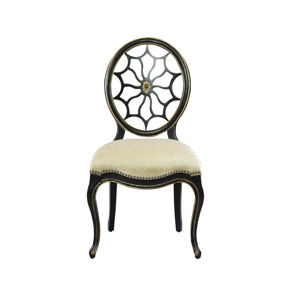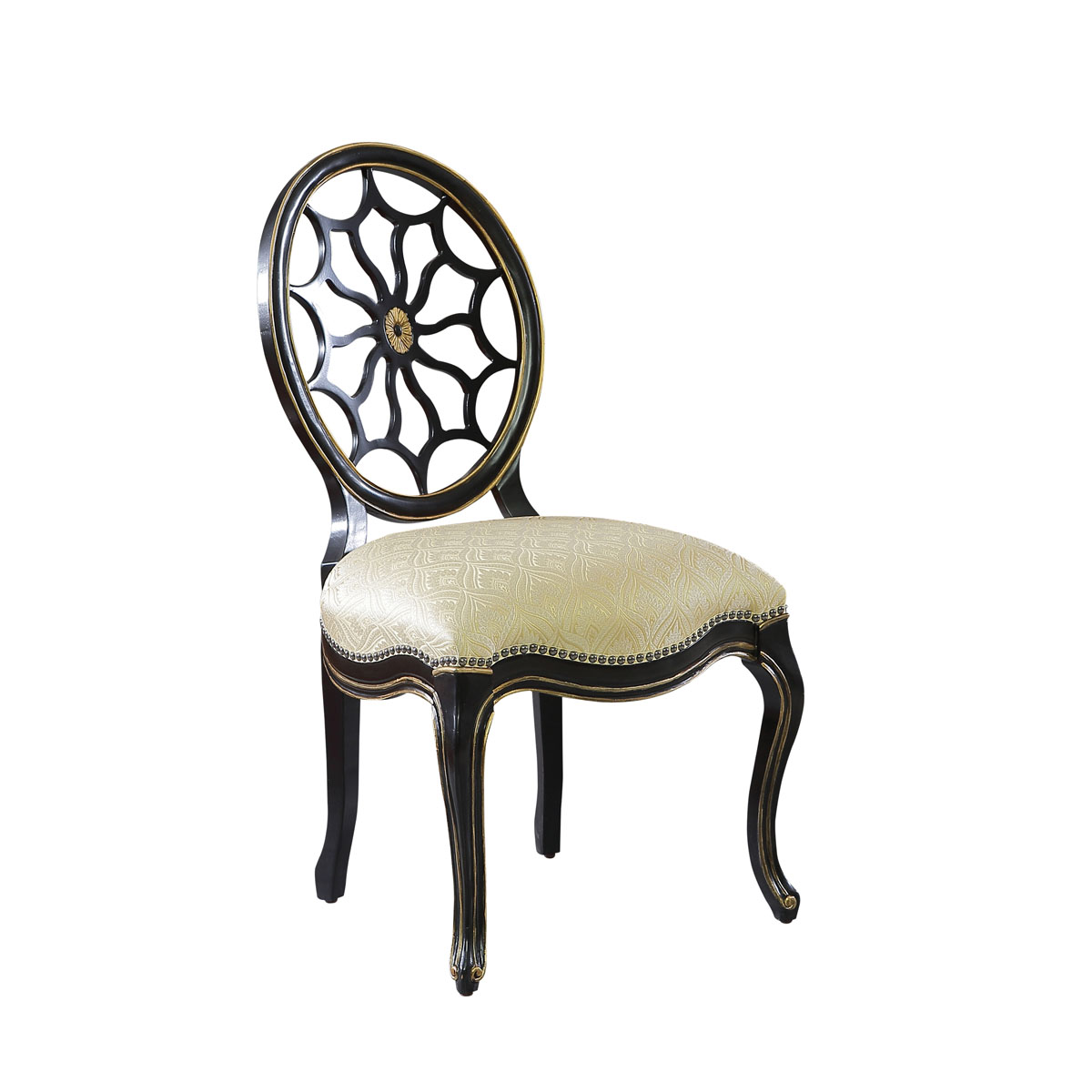 * 以喬治三世時(shí)期的古董家具為靈感,使用船舵造型椅背和安妮王后腿,配以精致的手工雕刻細(xì)節(jié)和涂金工藝、浪漫的花形布藝和厚實(shí)柔軟的填充物,完美演繹了法式宮廷家具的奢華尊貴。