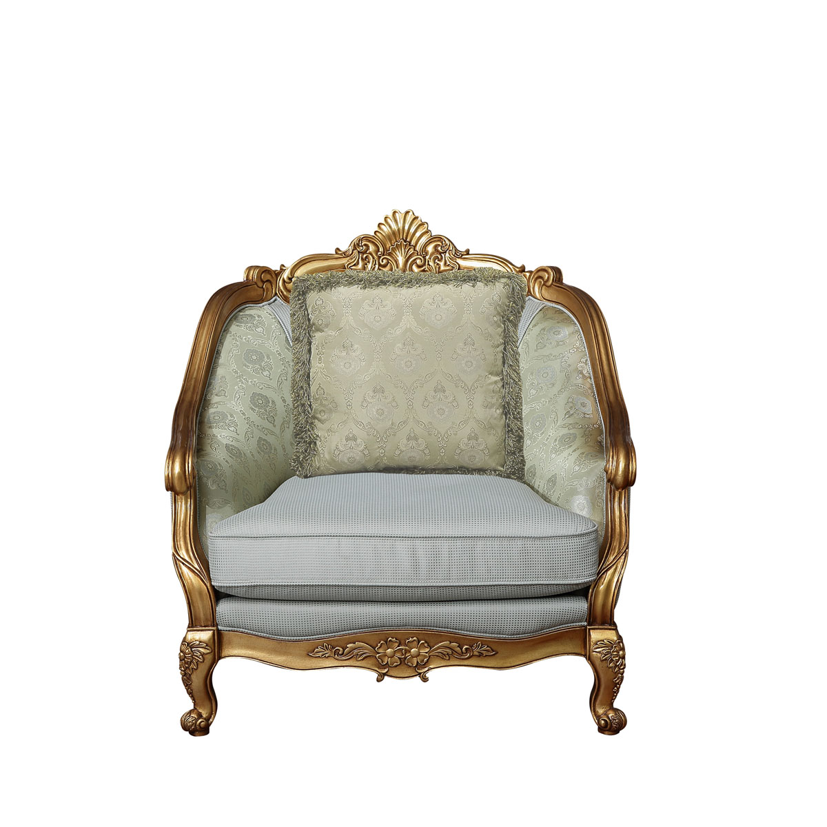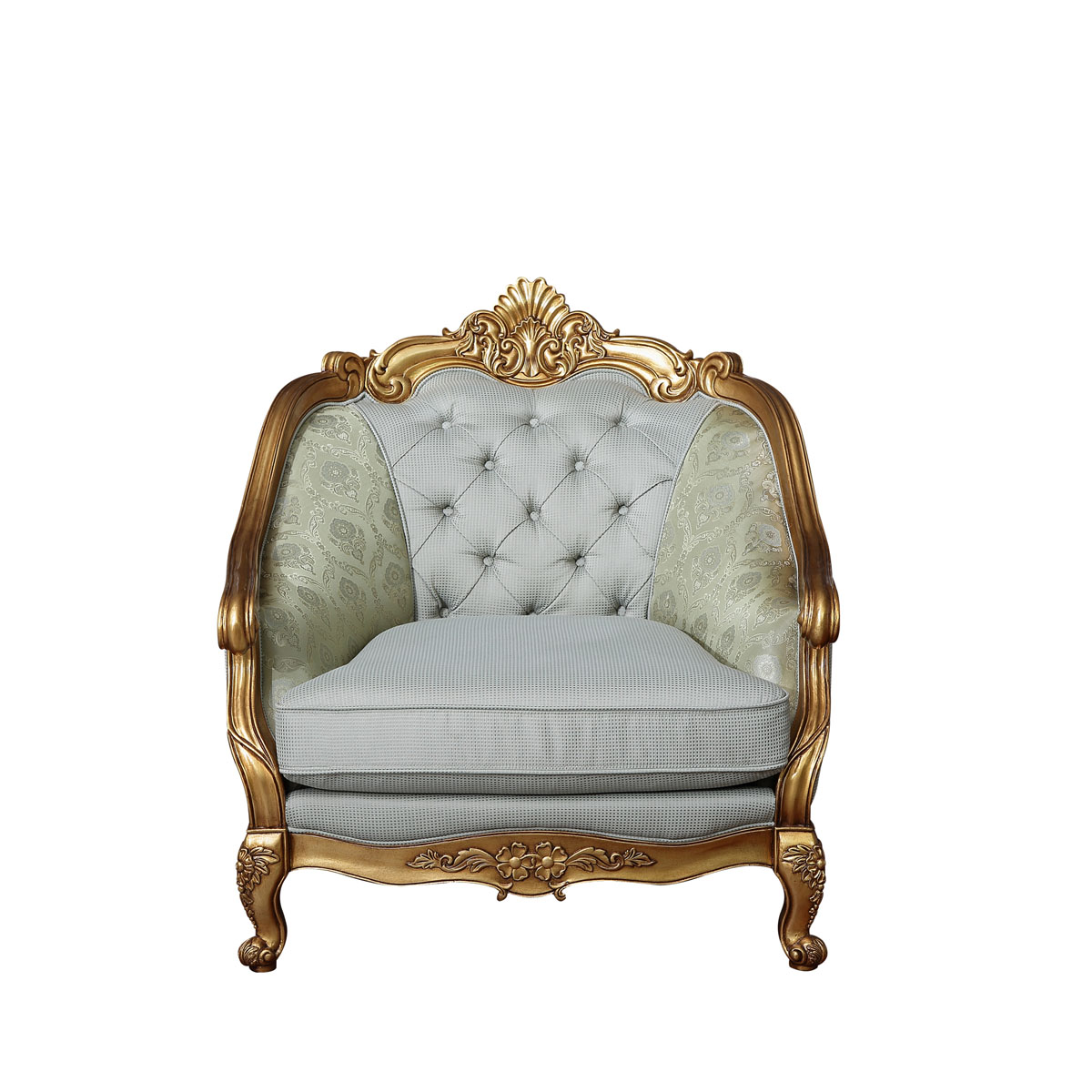 * 為表現(xiàn)法國路易時期的莊嚴(yán)與浪漫,以凡爾賽宮為設(shè)計元素。猶如凡爾賽宮建筑頂?shù)纳嘲l(fā)造型,搭配實木雕刻, 雙重觸感的軟包配搭和包有豐厚的填充物, 完美演繹了法式宮廷家具的奢華尊貴