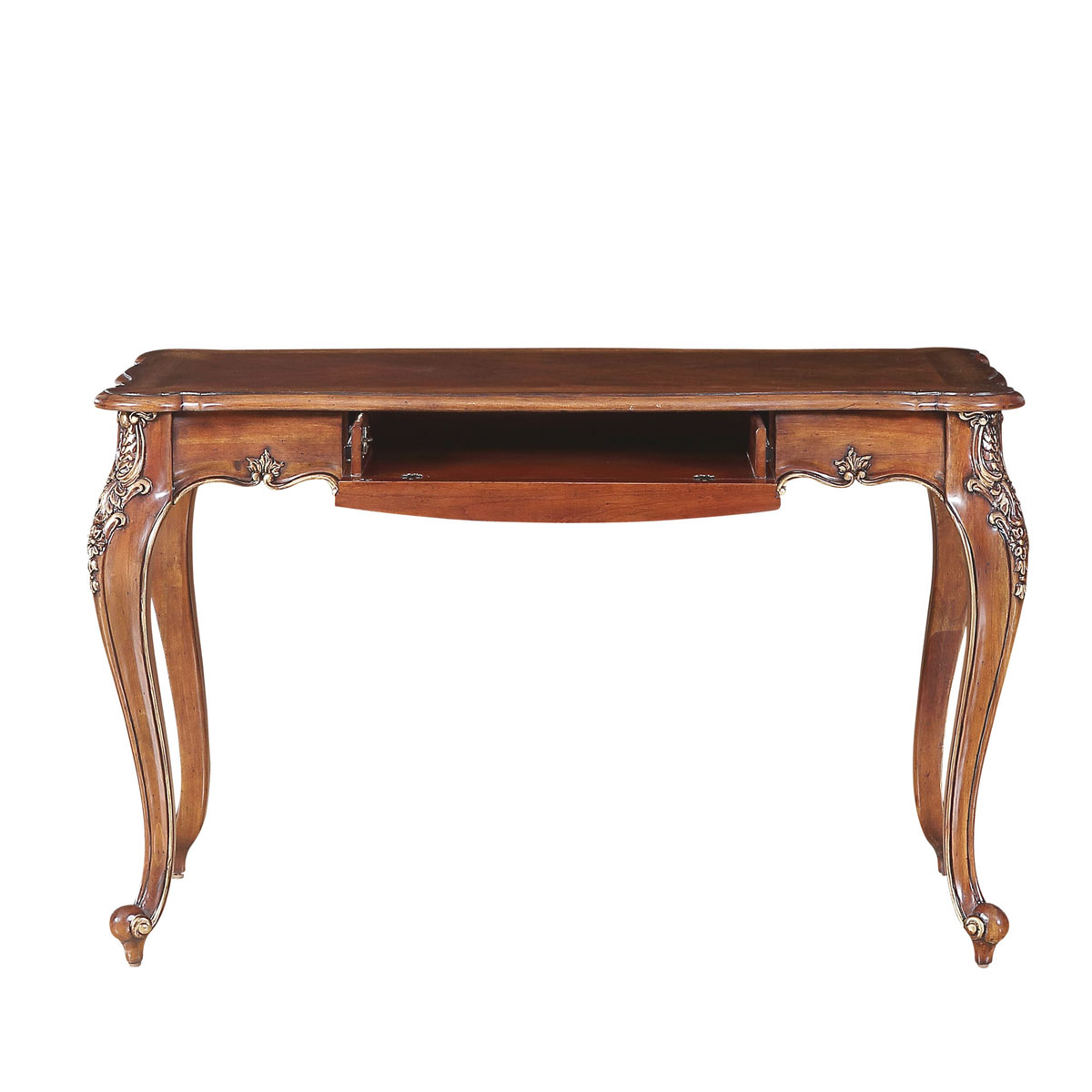 * 手工雕刻的藤蔓、阿坎瑟斯卷葉圖案和彎腳設計 * 結實的連接技術 * 中央有1個鍵盤斗,內有線孔,可與鍵盤配合使用